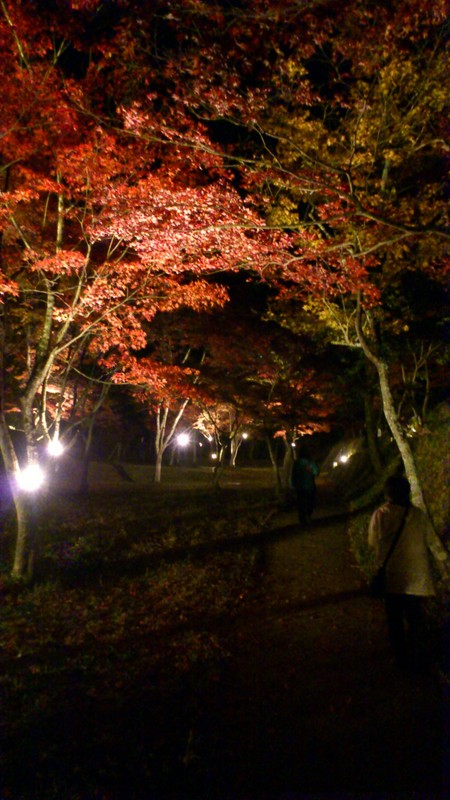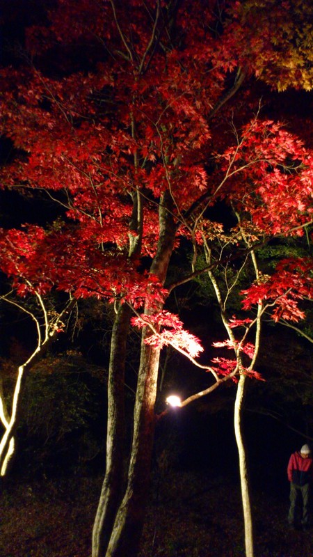 真っ赤なもみじが暗闇に照らされ、とても幻想的でした。