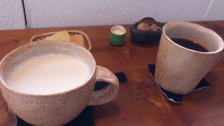(画像3ジンシャーミルクとコーヒー&手作りクッキー付き)