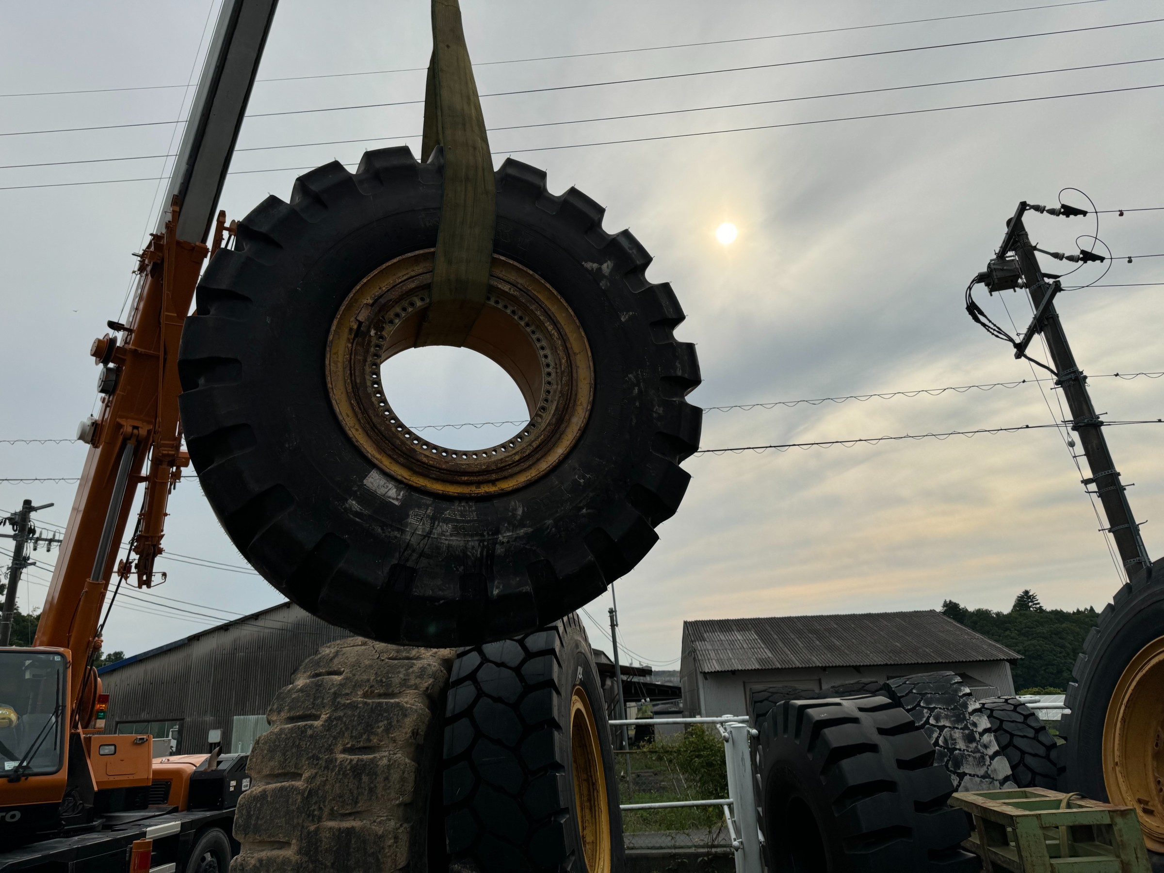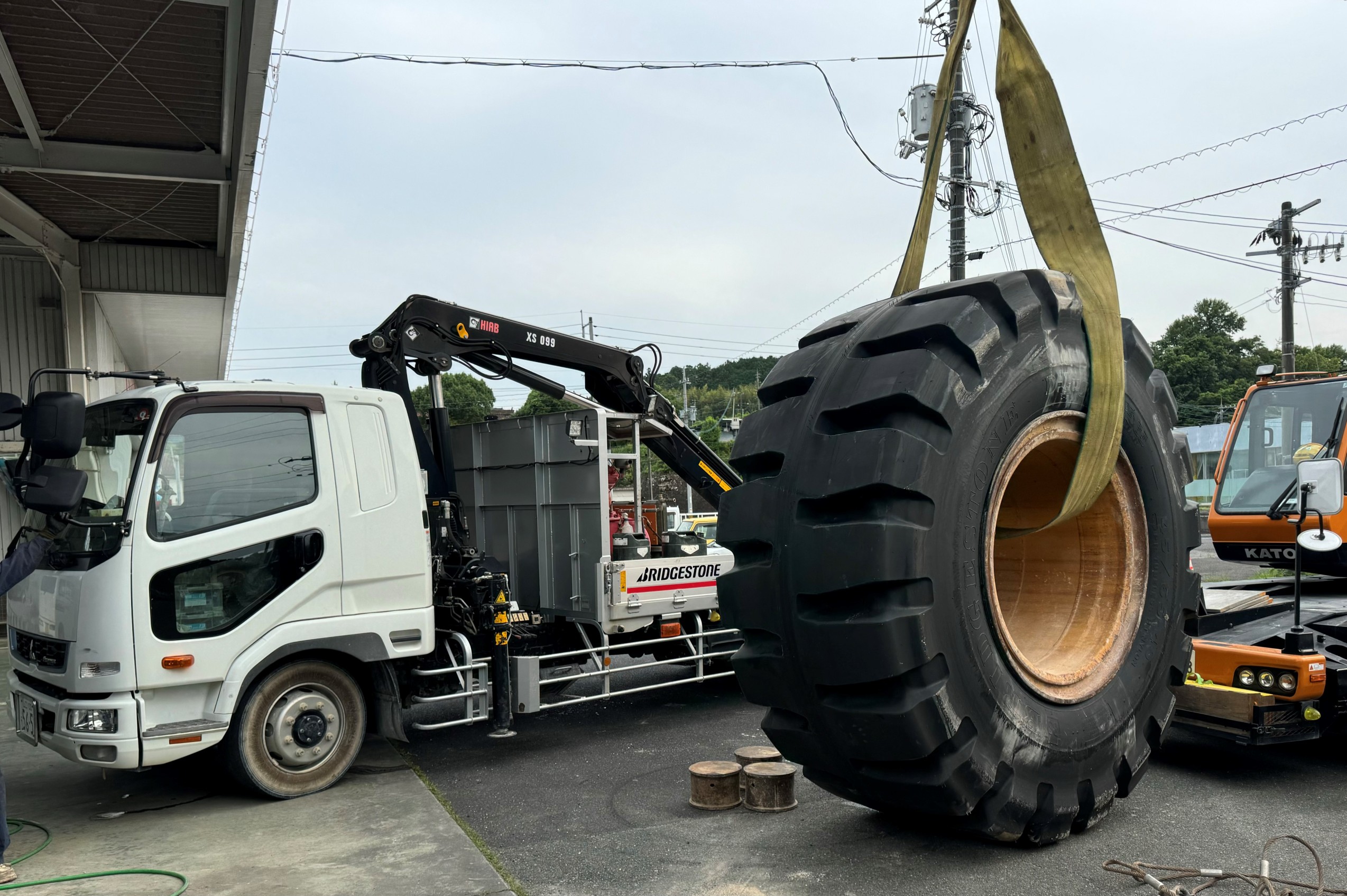 今日は 普段なかなか見ない大きなタイヤの脱着・組替作業です。