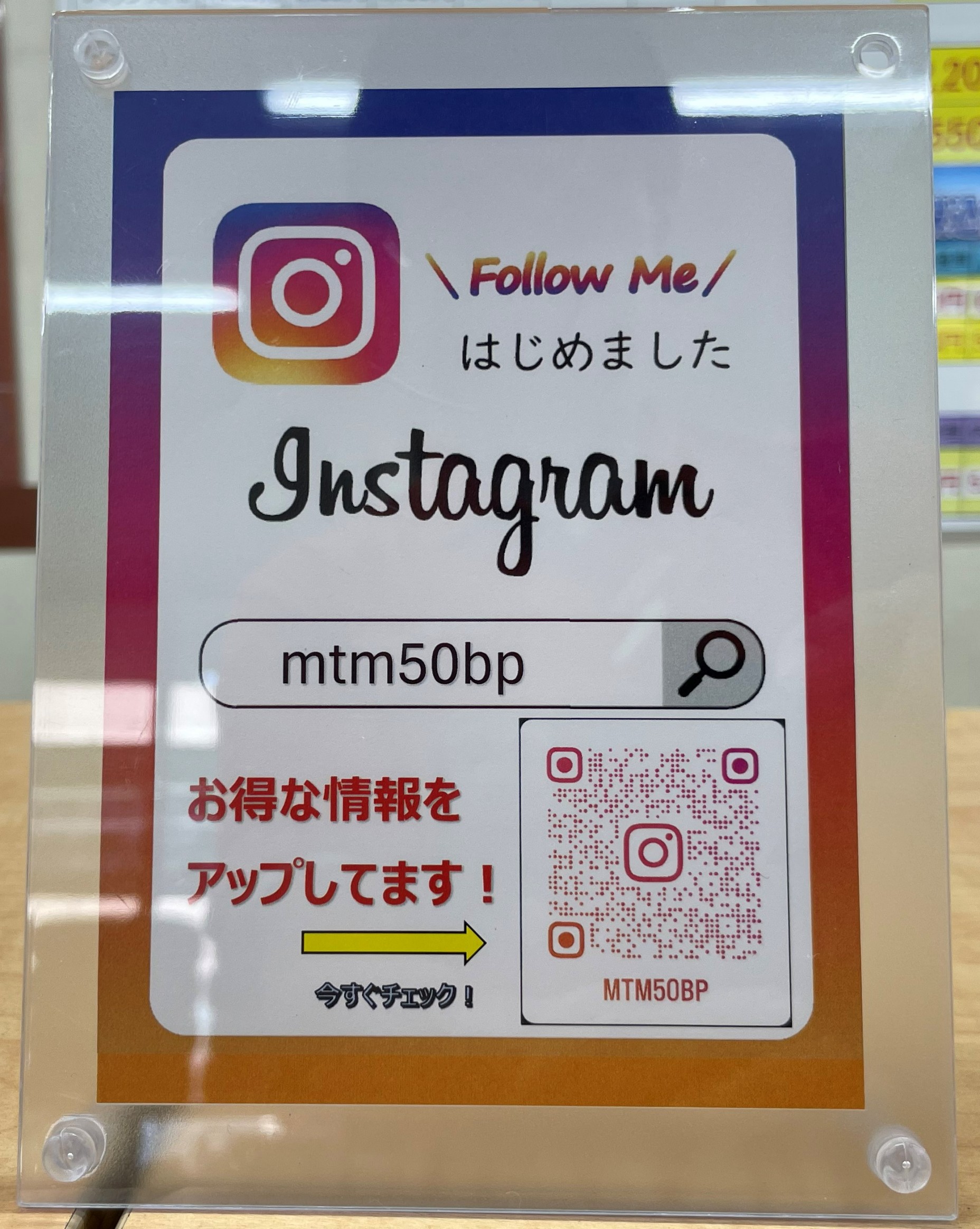 Instagram開設しました。 2025年8月30日 皆さんこんにちは、 店長こと「つっつん」です!! 今日は、Instagramを開設したのでご紹介に来ました。 色々な情報などを載せていくので、 是非ご覧になってください!! よろしくお願い致します。 関連記事 50号バイパス店