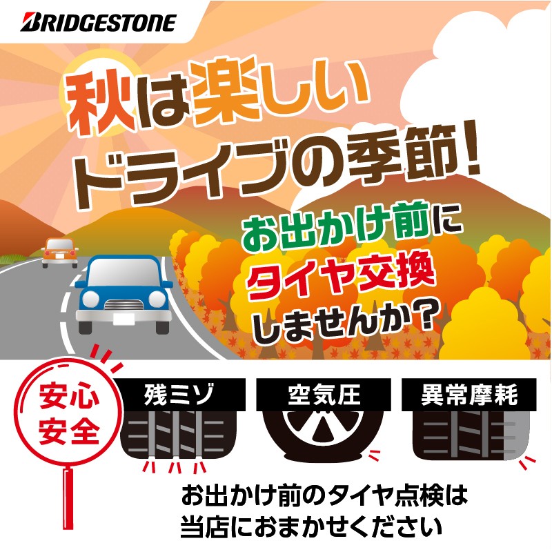 10月店休日のお知らせ 2025年9月30日 皆様、こんにちは! ミスタータイヤマン三豊店です!(^^)! 食欲の秋!10月のおやすみ連絡!(^^)! 毎週日曜日、13日月曜日(スポーツの日)は、 お休みさせていただきます。 スタッドレスタイヤ早期予約受付中!!~~~///(^v^)\\\~~~ スタッドレスタイヤをお持ちの方、 「今年もお持ちのスタッドレスタイヤは使用可能か?」 ぜひ点検にご来店ください!
