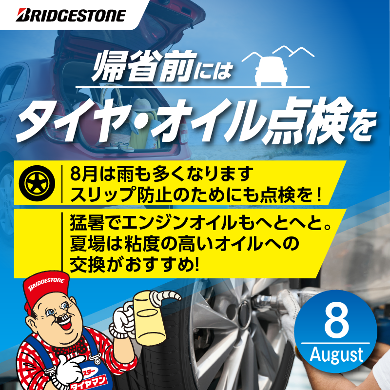 お盆休みのご連絡 2024年7月12日 皆様、こんにちは! ミスタータイヤマン三豊店です!(^^)! お盆休みのご連絡 8月10日(土) 9:00~17:45 8月11日(日)~8月16日(金) お盆休み 8月17日(土) 9:00~17:45 8月18日(日) 定休日 8月19日(月) 9:00~17:45 ※8月10日(土)と17日(土)は通常営業ですが、 混雑が予想される為、 早めの「点検・交換」をお願い致します。 関連記事 商品情報