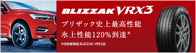 あの絶大な人気を誇る「VRX2」が進化! 雪国、北海道・北東北主要5都市で22年連続NO.1装着率という 伝説的記録を作ったブリザックだが、 なんと、VRX3では氷上性能がVRX2比で20%向上。 そして、冬タイヤを購入する上で欠かせないのが、「長持ち」 これもなんとVRX2比で17%向上。 そして、2022年10月より”BLIZZAK史上最高性能をSUVへ”と題して SUV用10サイズが拡大! 多くの人に”この性能を体感”して頂きたい!
