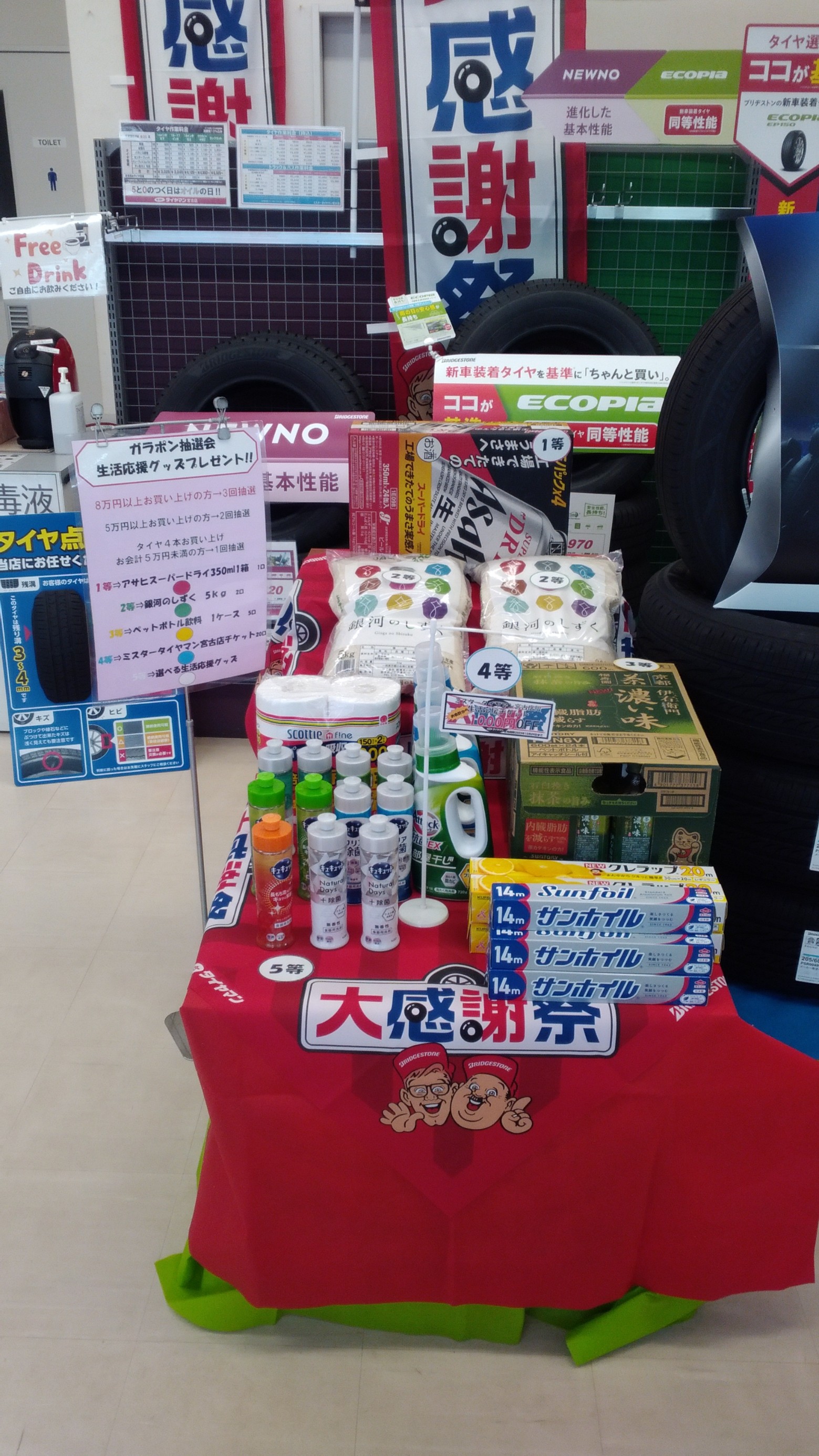 夏、冬アウトレットタイヤコーナー設置の他