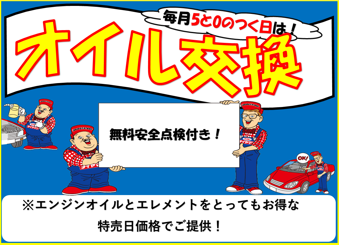 毎週5と0のつく日はオイル交換の日!! 国産ガソリン車の軽自動車、コンパクトカー、乗用車の