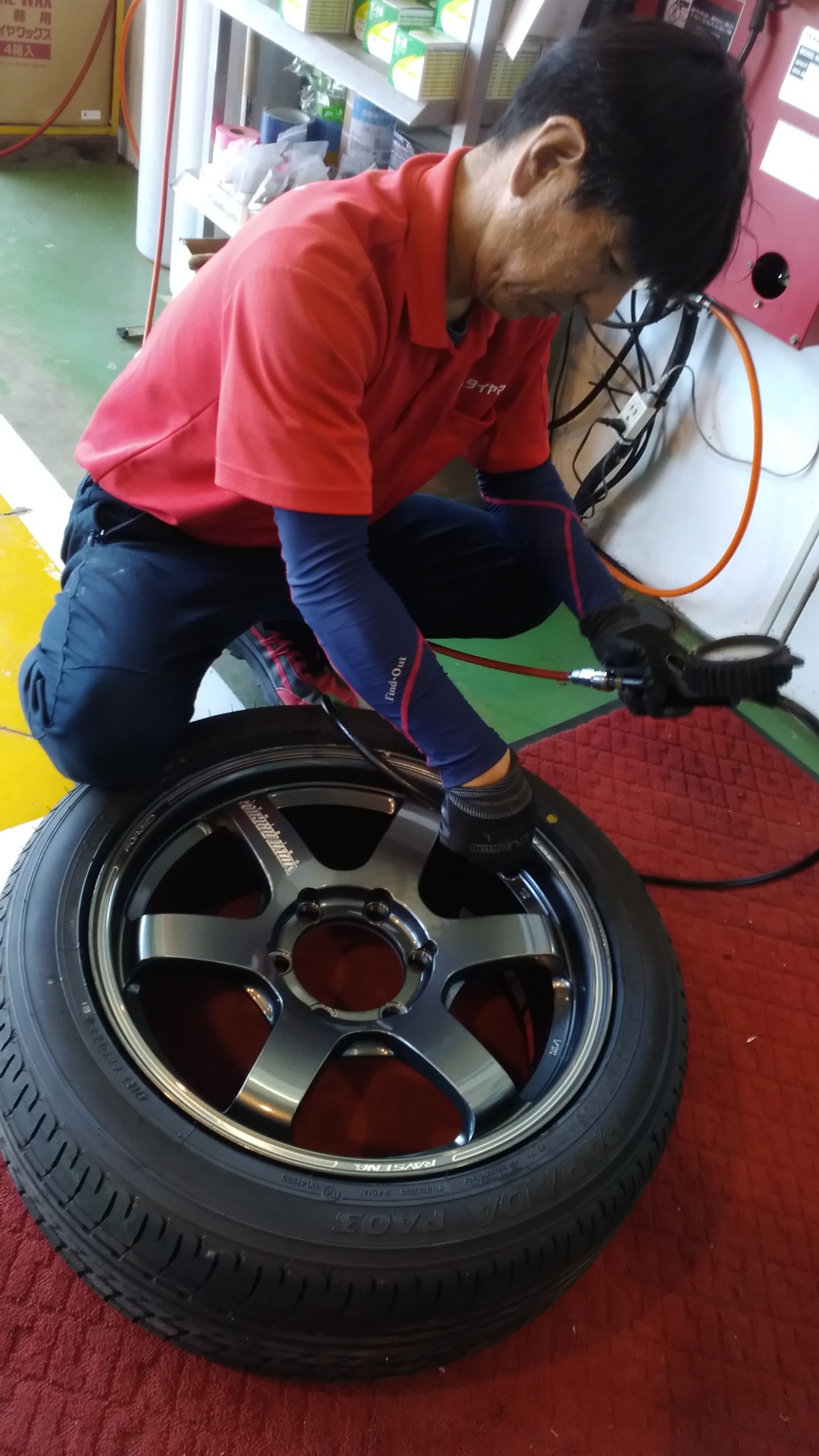 タイヤ組込後はこだわりの窒素ガスを充填します!