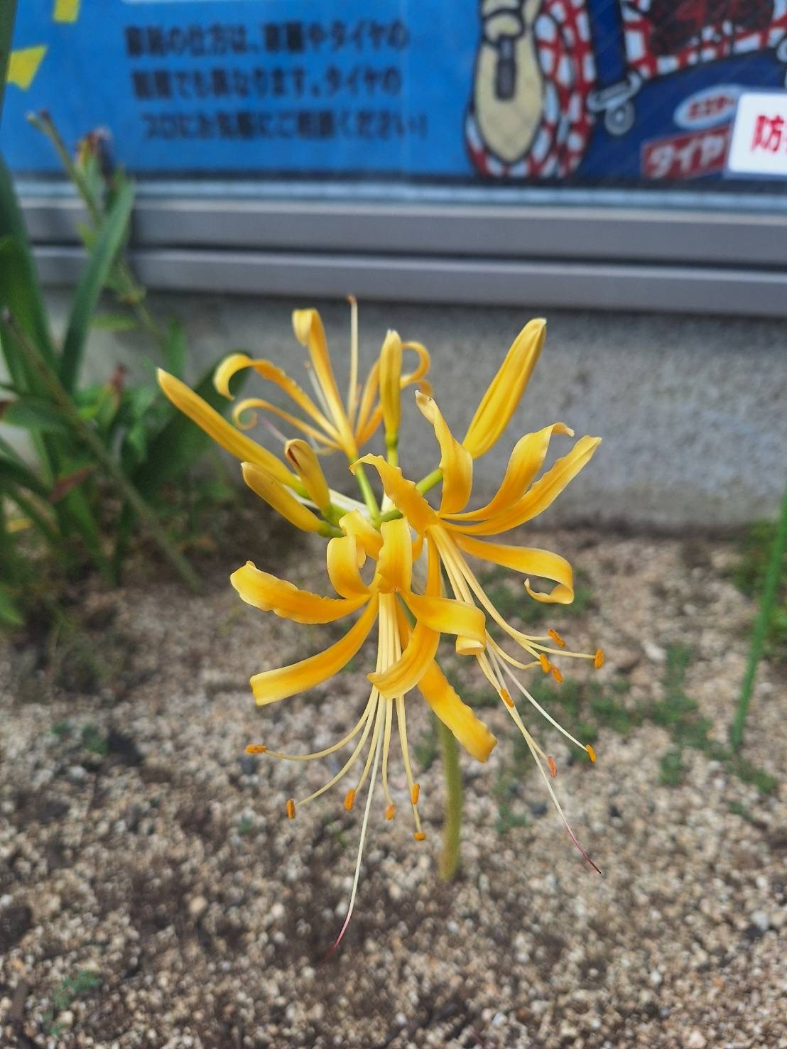ショールームの前の花壇に黄色の彼岸花が咲きました。