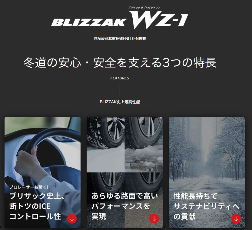ブリザックBLIZZAK史上最高性能で冬道の安心・安全を3つの特長で支えます(*^^)v