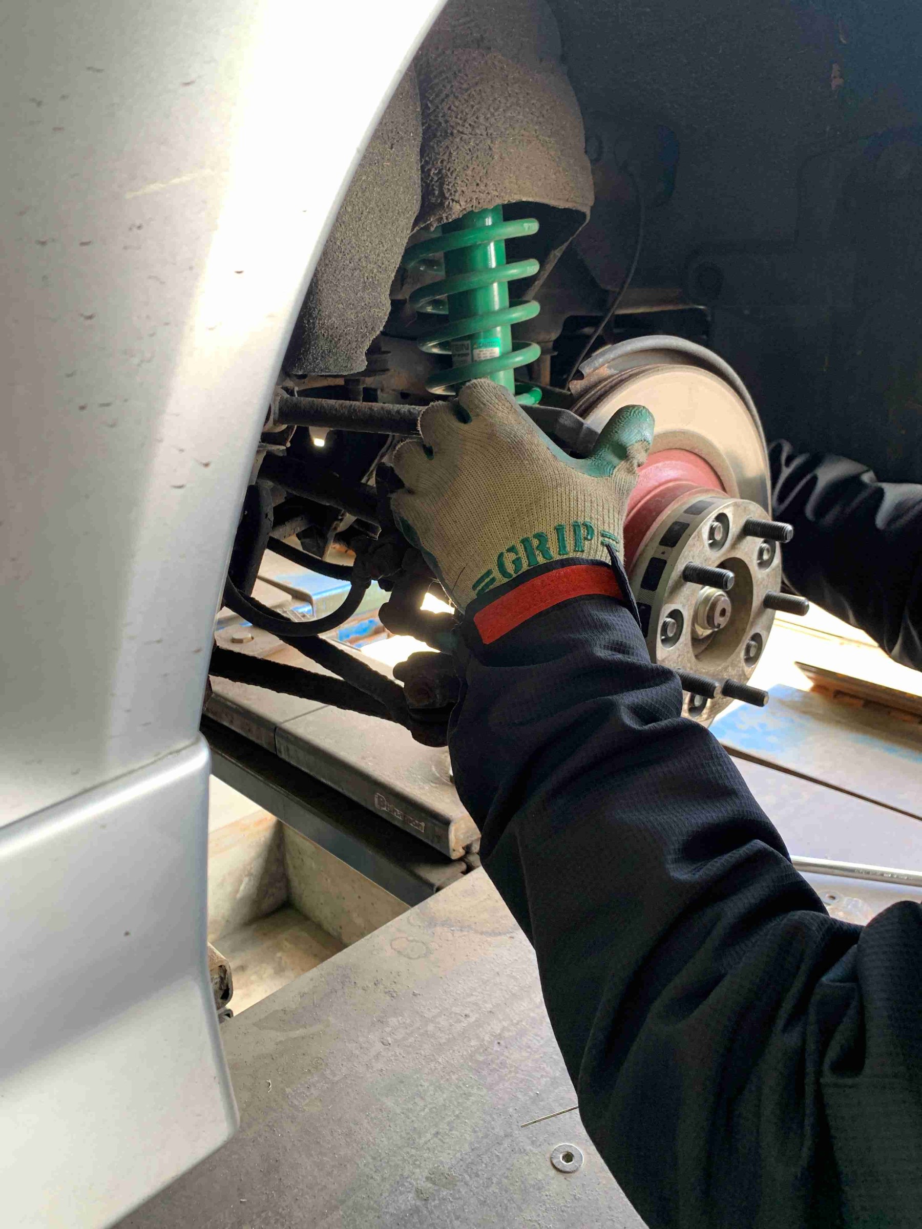 今回のオーナー様は、夏場に車高調に交換、アライメント調整をするタイミングを逃し、冬タイヤに交換したら偏摩耗しており急ぎアライメント調整したい!