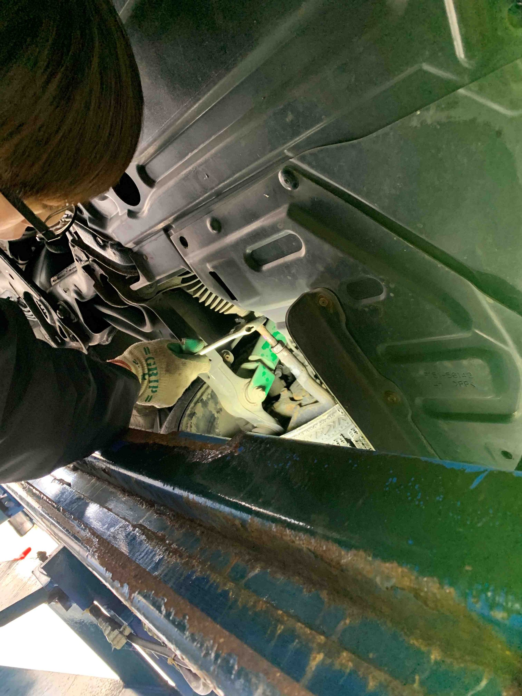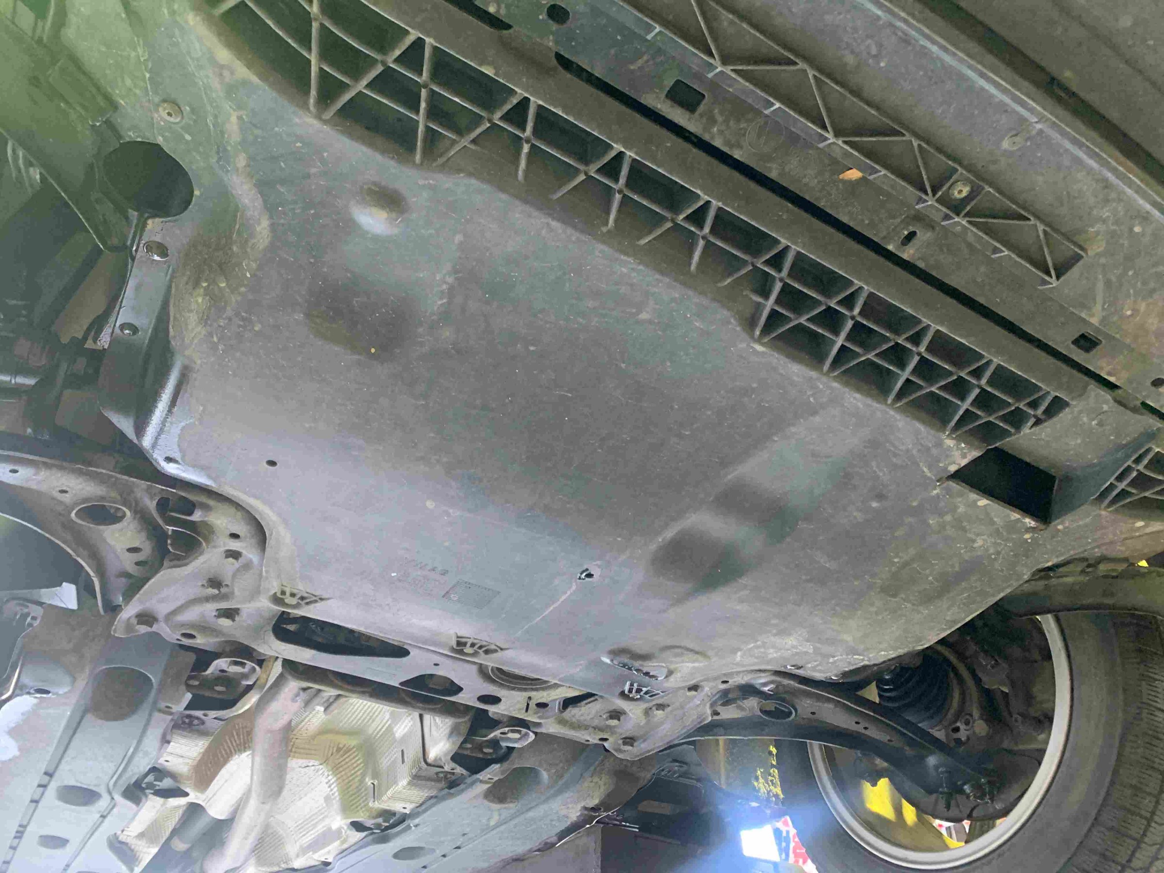 オイルパンにアクセスする為にスプラッシュシールド(アンダーカバー)を外します。