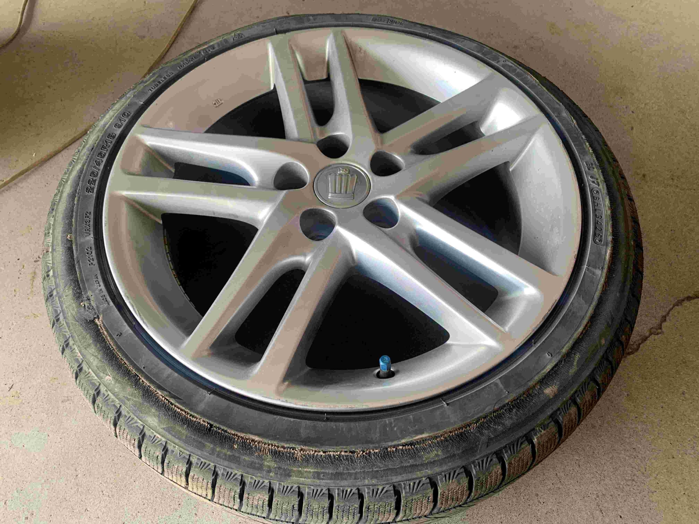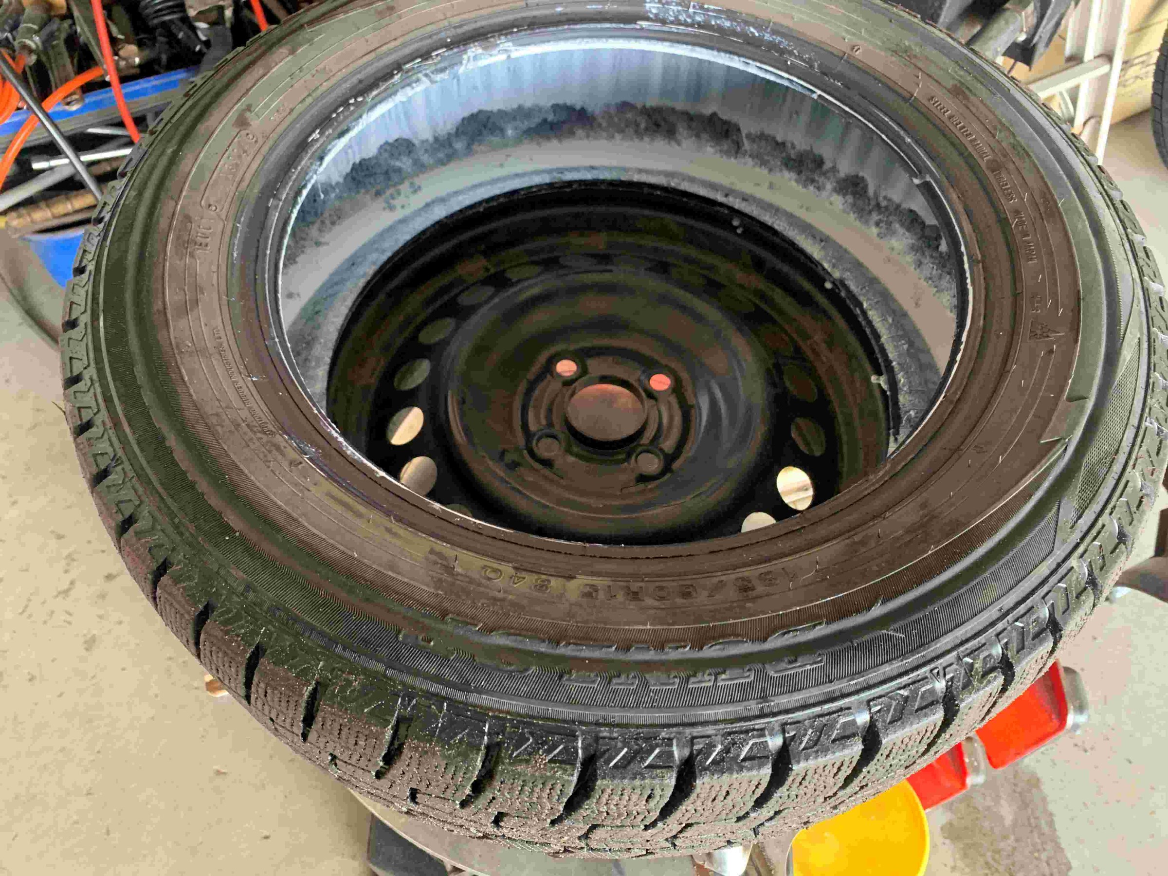 最終的に、夏用の純正アルミホイールを一本持ってきてもらい、これに新しいタイヤを装着して一か月ちょろっと過ごすことになりました。