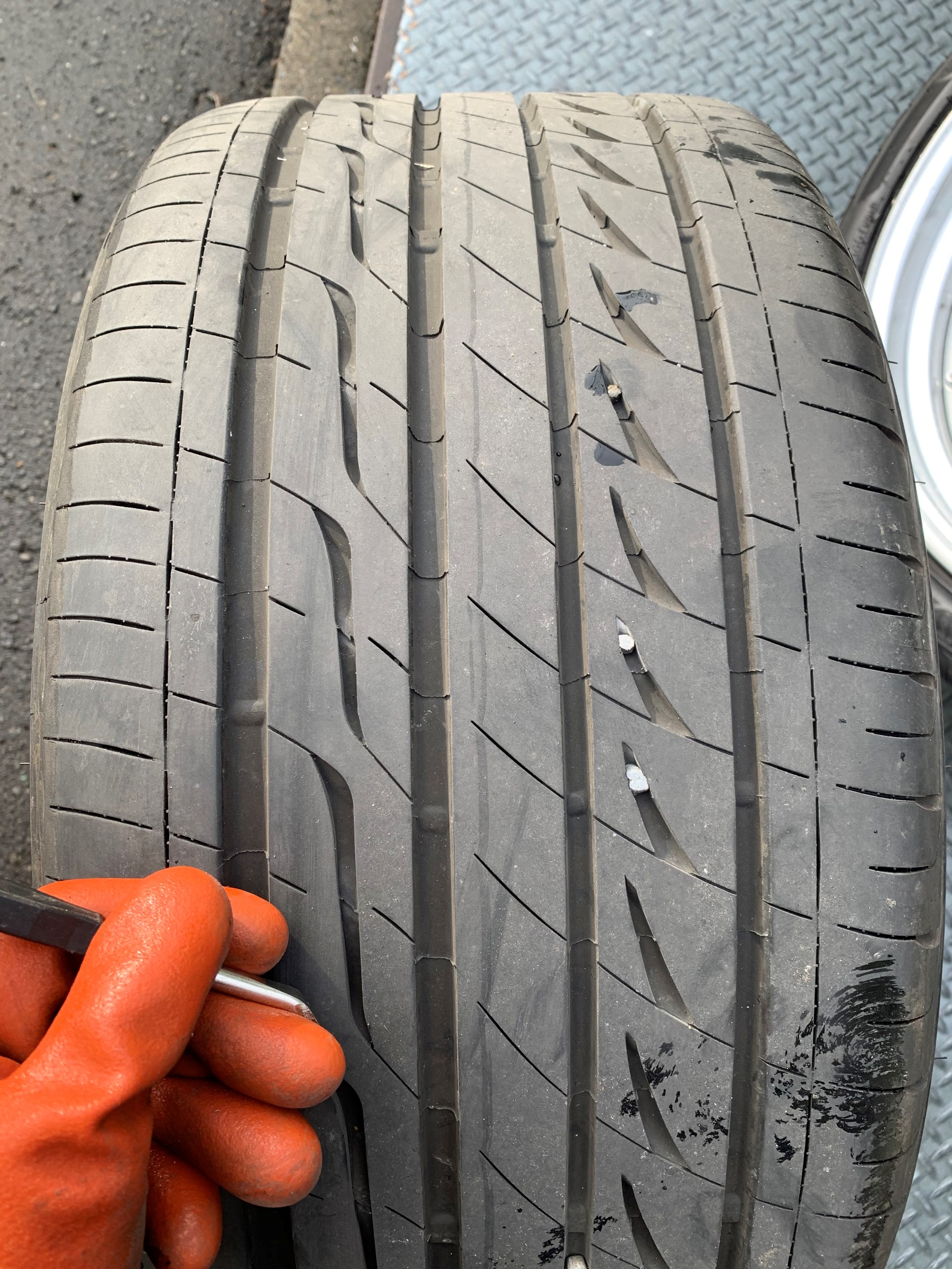 同時に釘などの異物を踏んでいないか、偏摩耗をしていないかを入念に確認します。