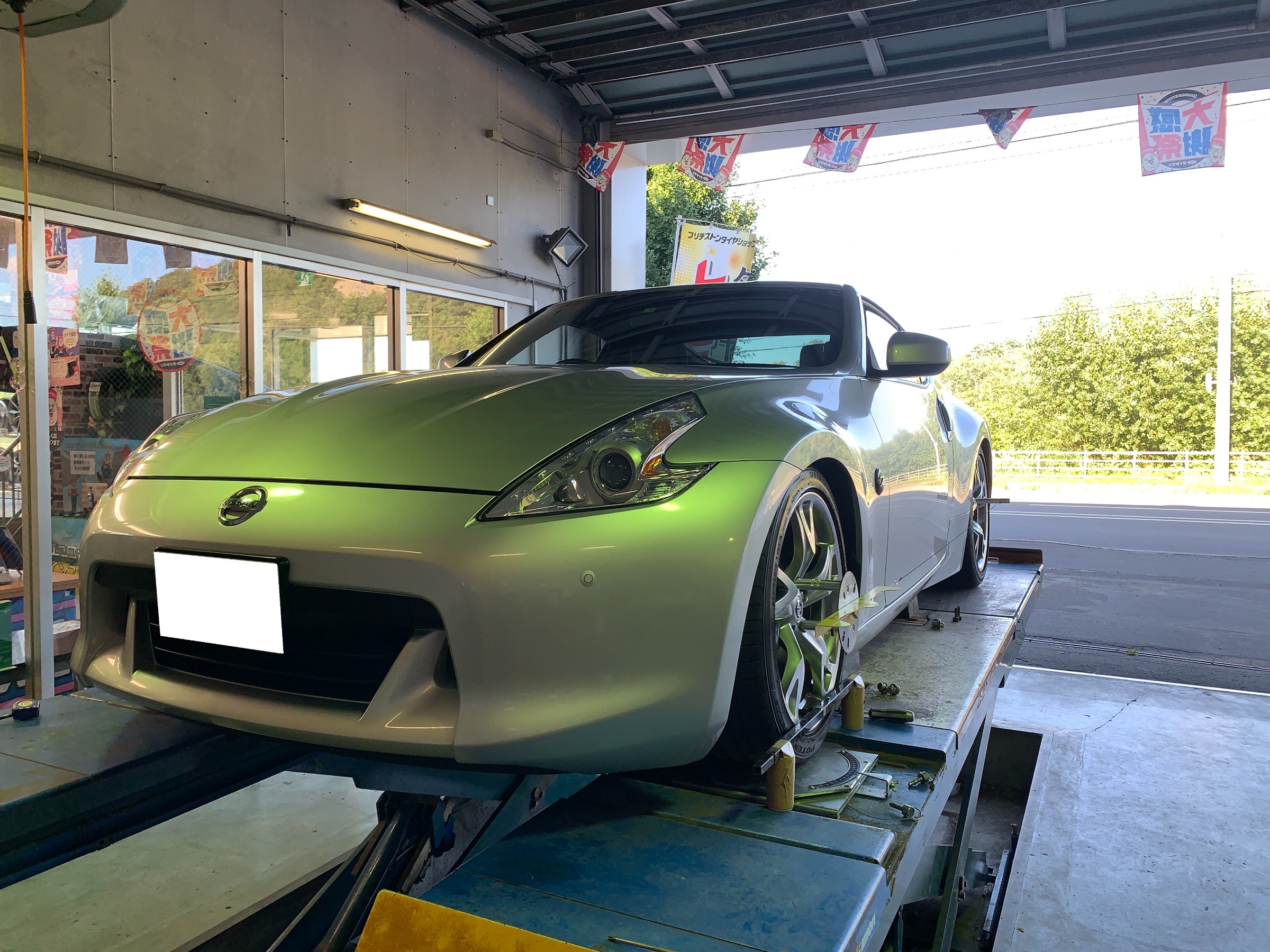 こちらのオーナー様は最近中古でZを購入し、車高調を導入しローダウンしたためアライメント調整のご用命です。