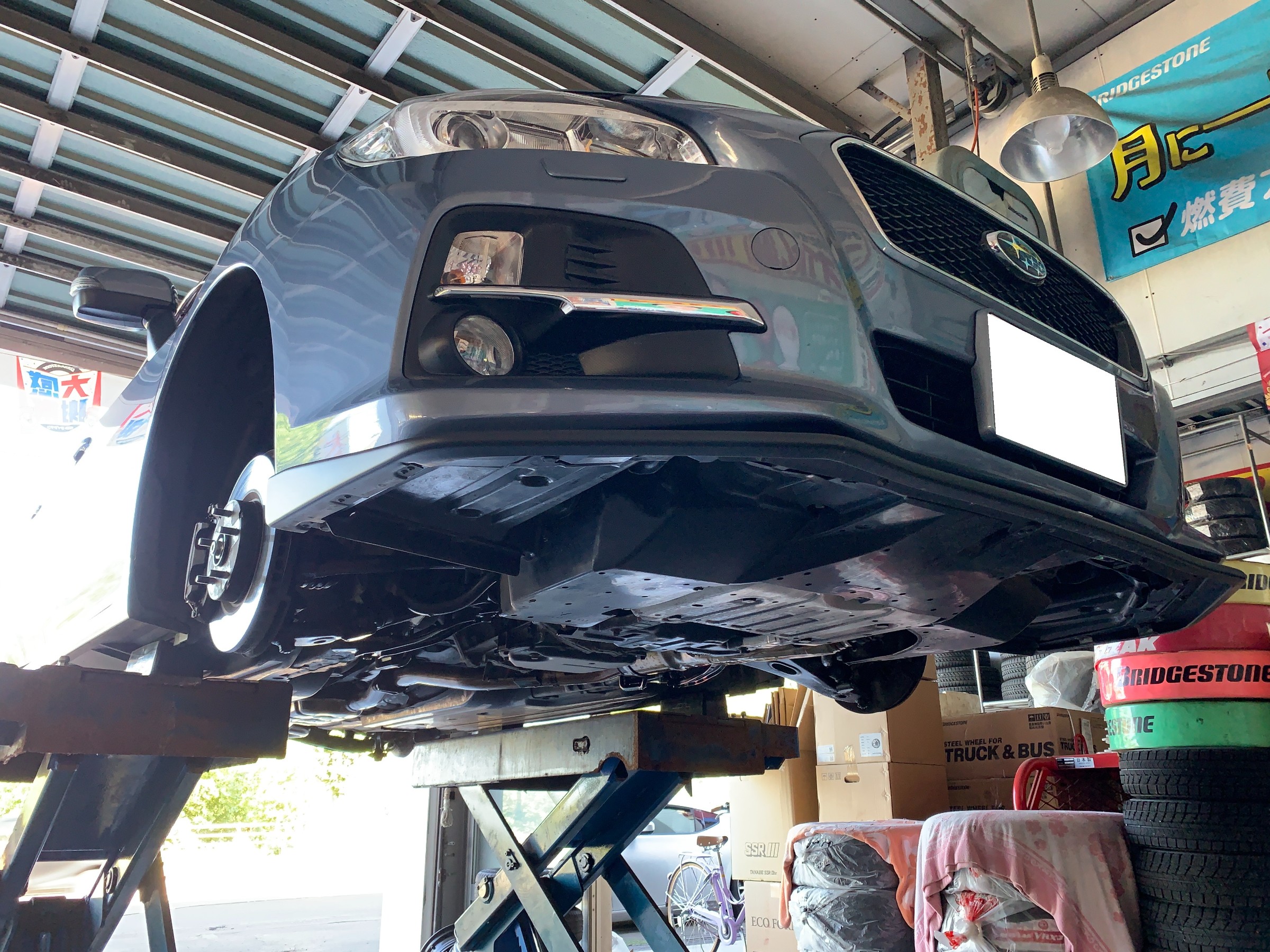 続いてはレヴォーグの下廻り防錆施工とバランス再調整です。