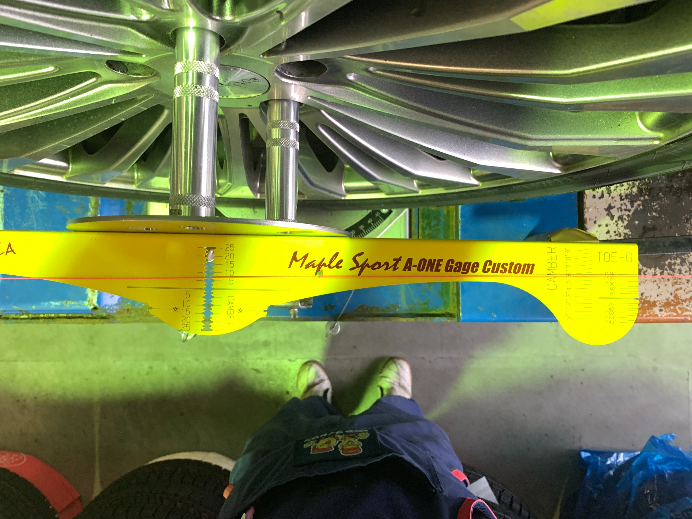 キャンバー角をチェックしてから、トーの状態を確認。