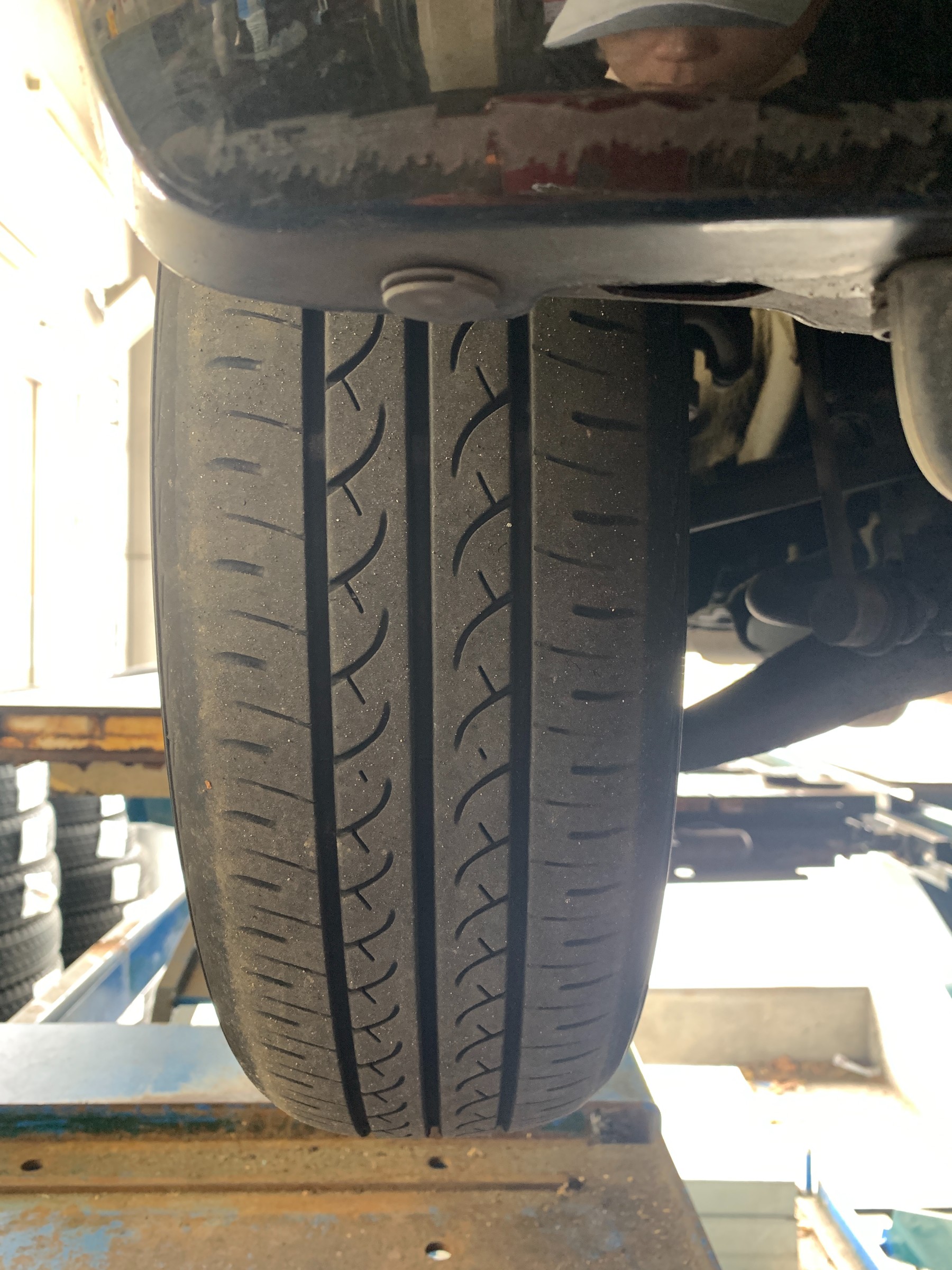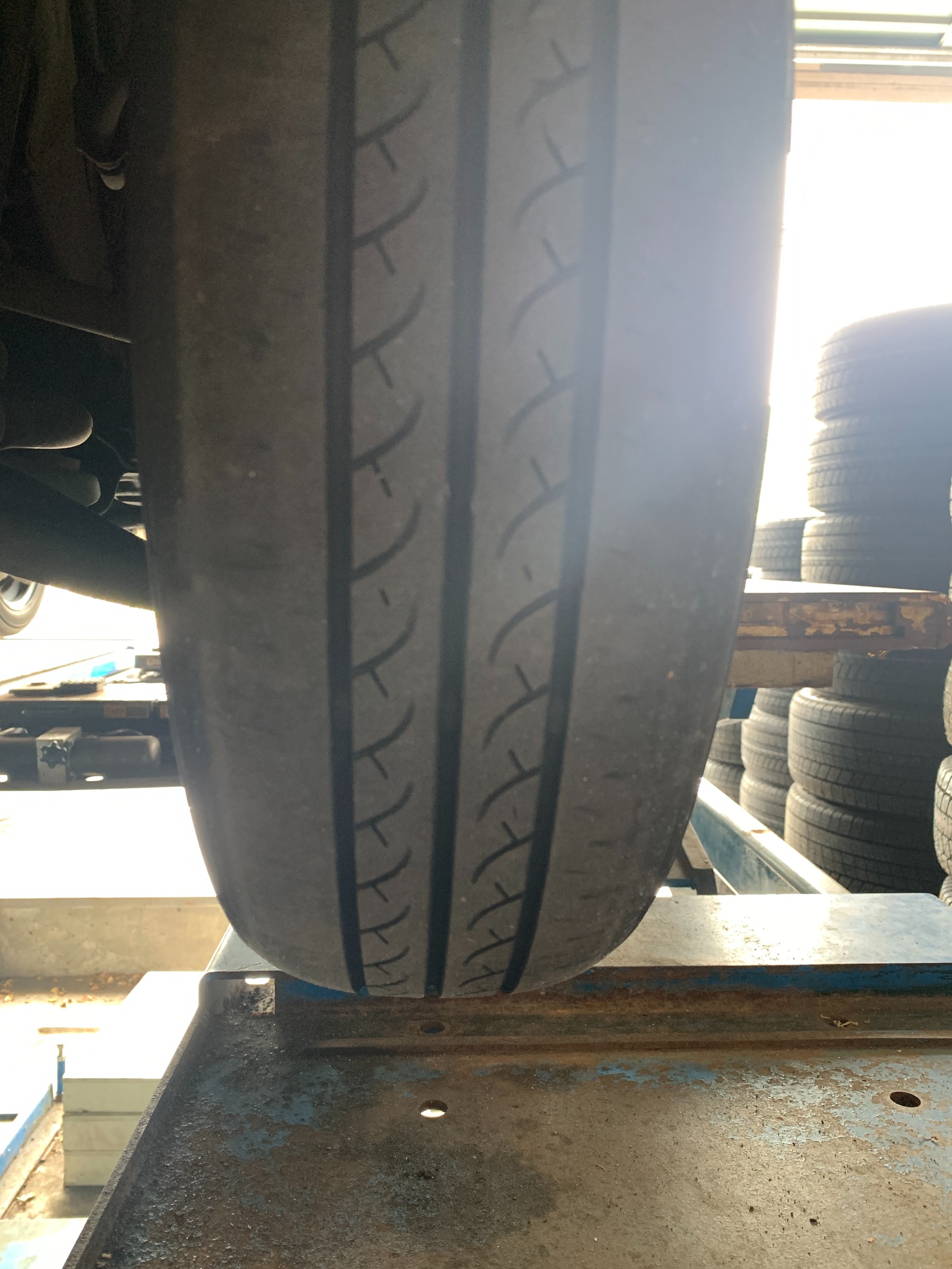 修理から戻ったあと、新品の夏タイヤを購入したものの半年もせずフロントタイヤの偏摩耗が著しく困っているということです。