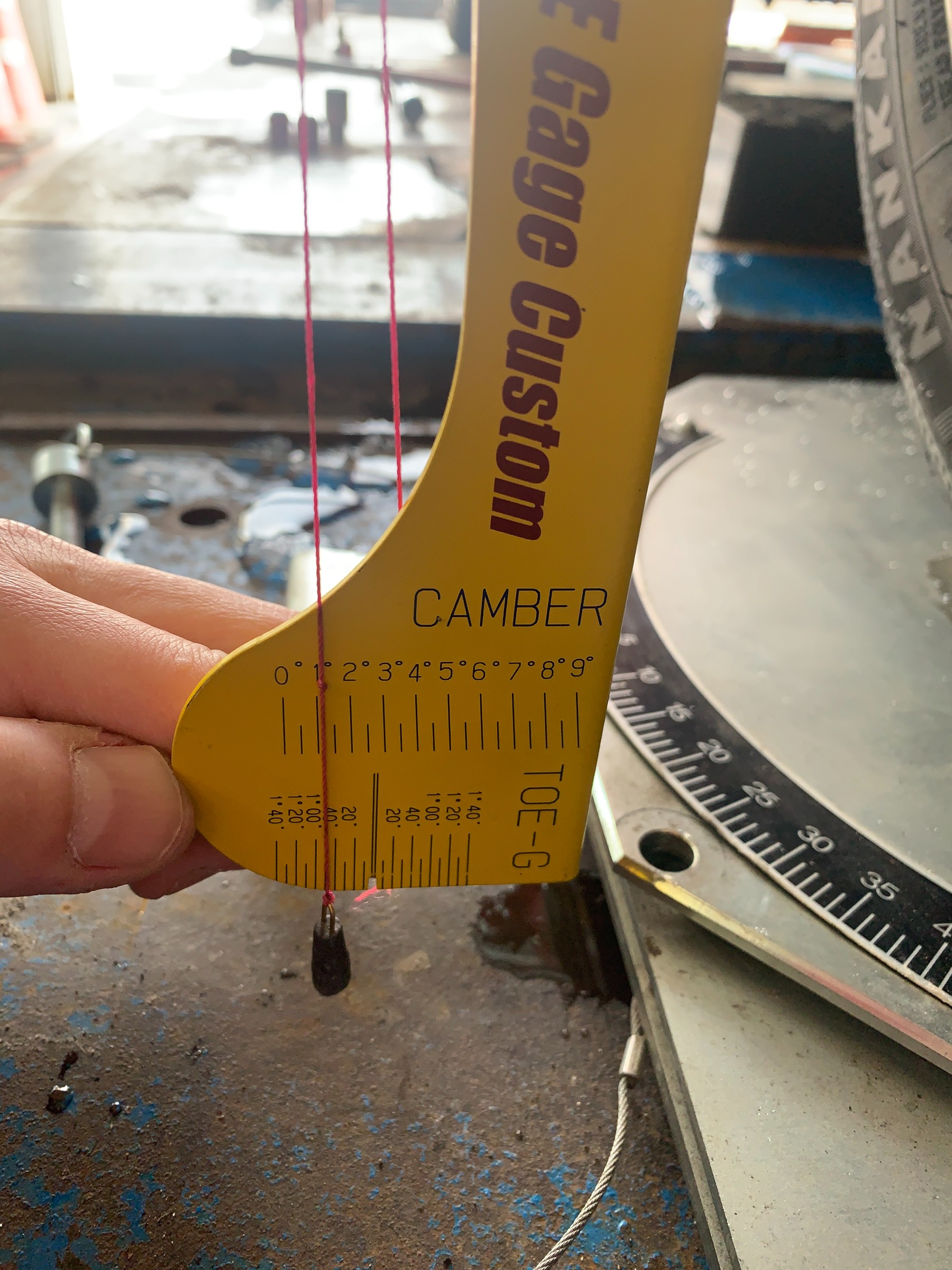 問題のトーですが、トータルトーで20mmもインについていました。 このまま乗っていると偏摩耗もそうですが運転もしにくく、冬路面ではヒヤヒヤする場面が沢山出てくるはずです。