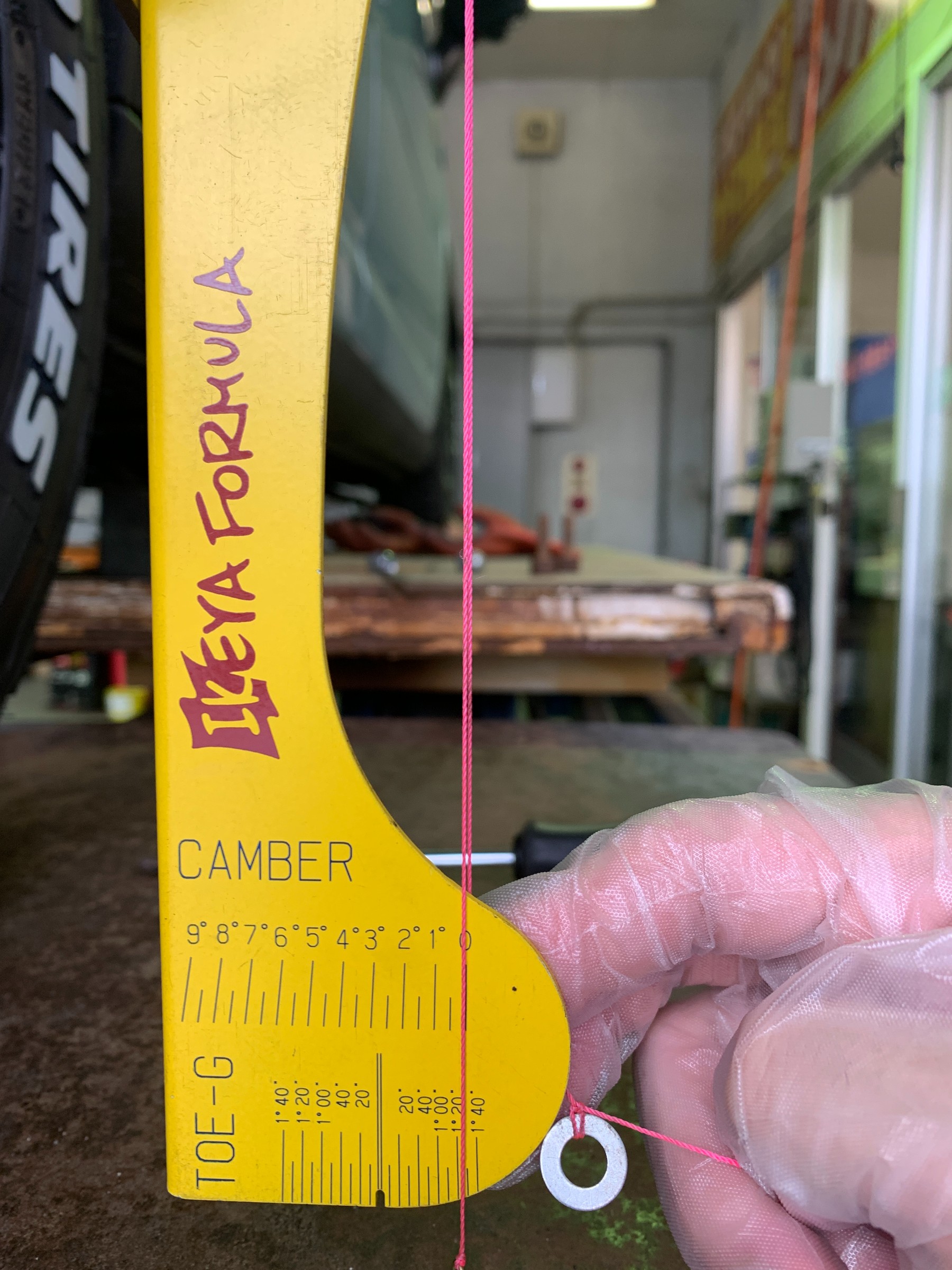 キャンバーボルトも3°くらい調整可能な品物が出回ったりしているので機会があれば交換してみてはいかがでしょう、などとお話をして終了となりました。