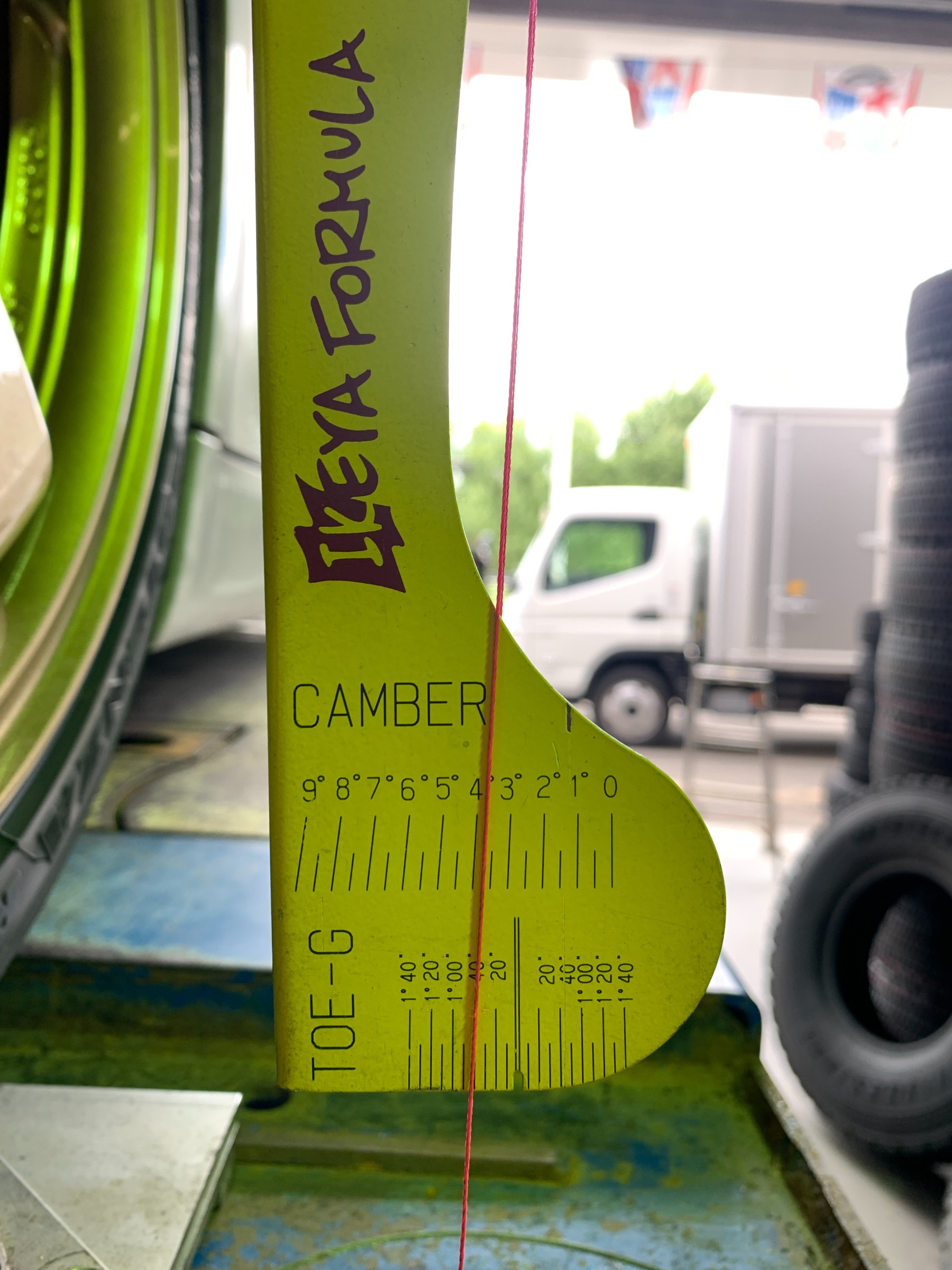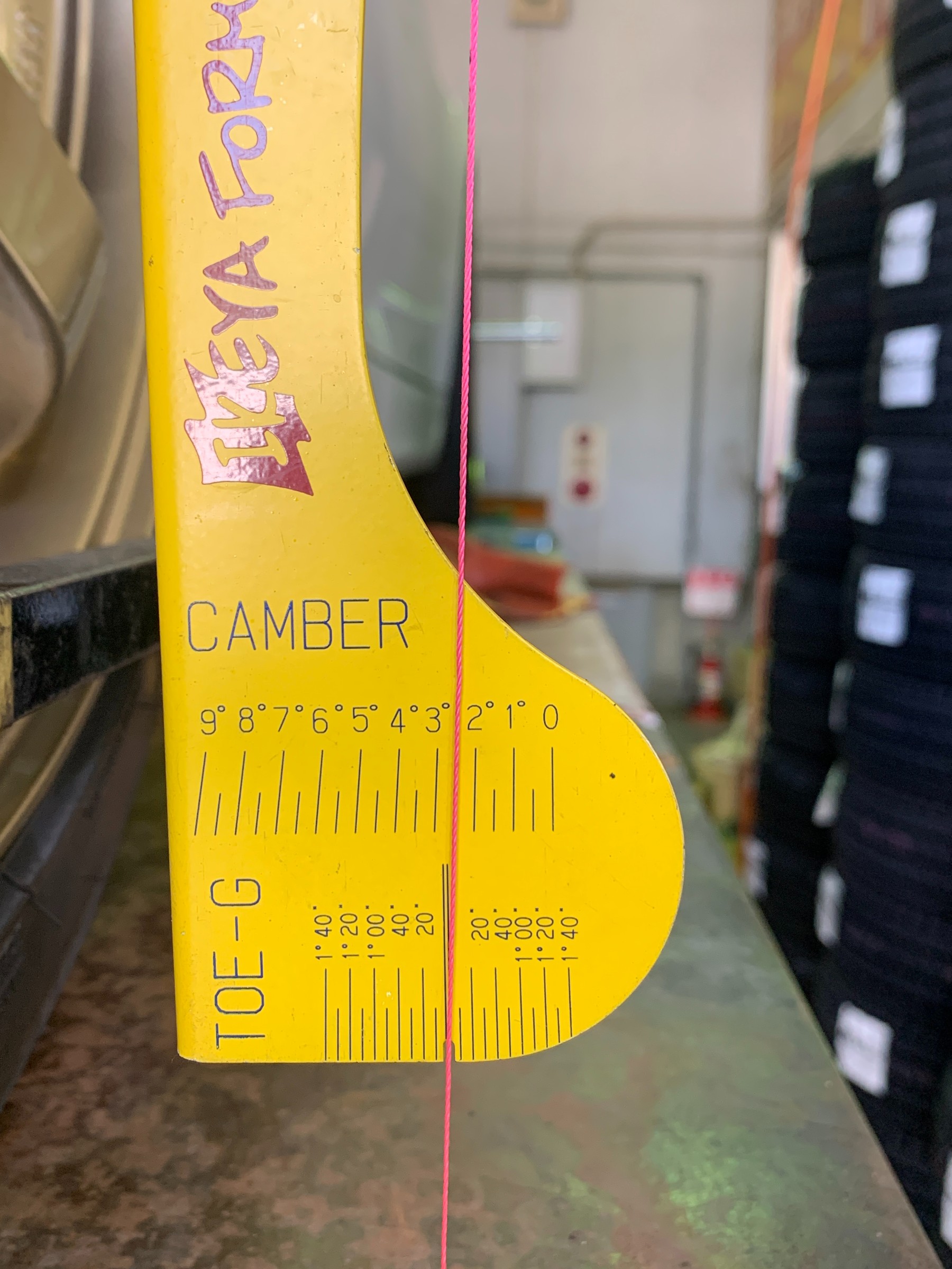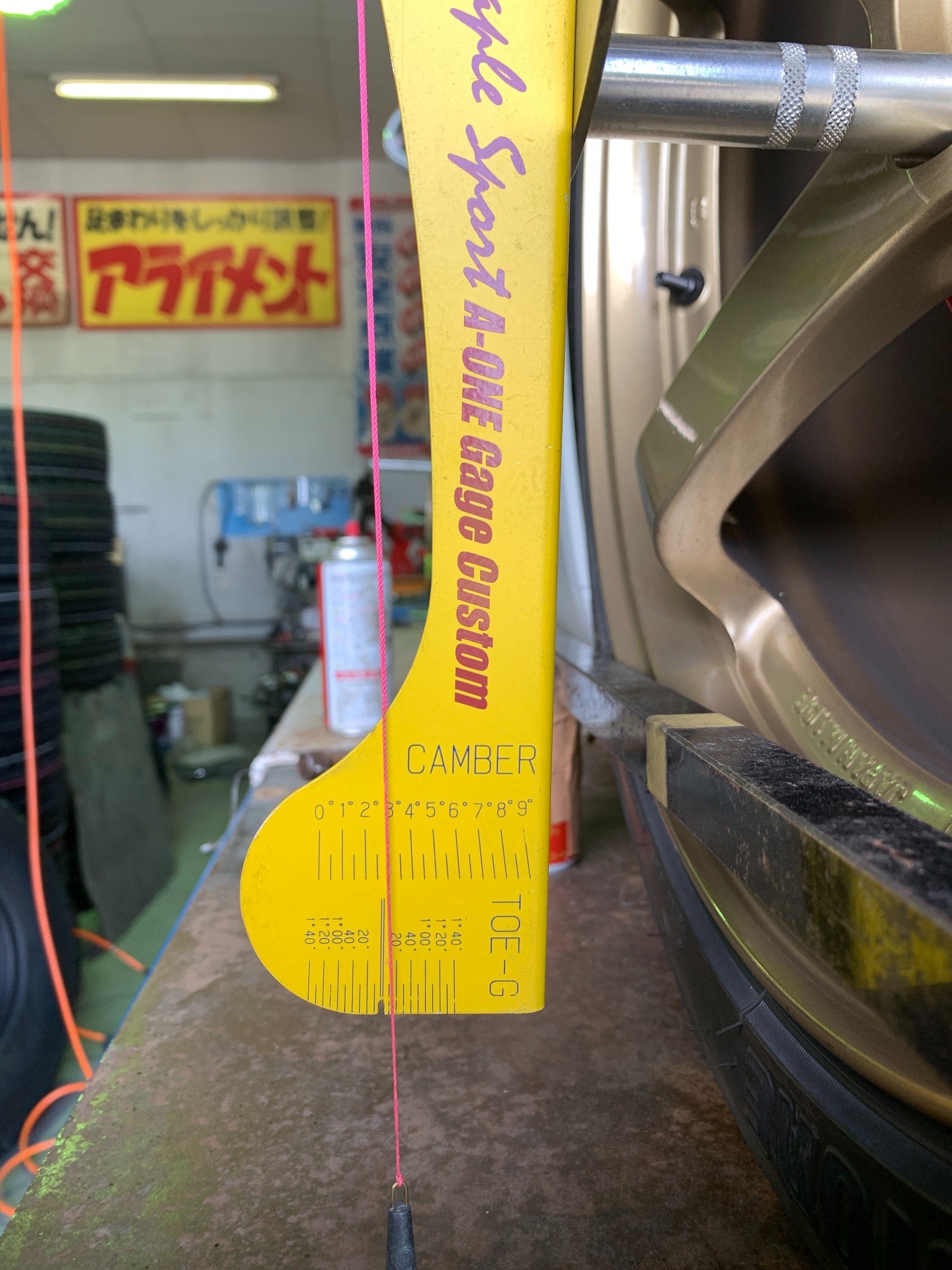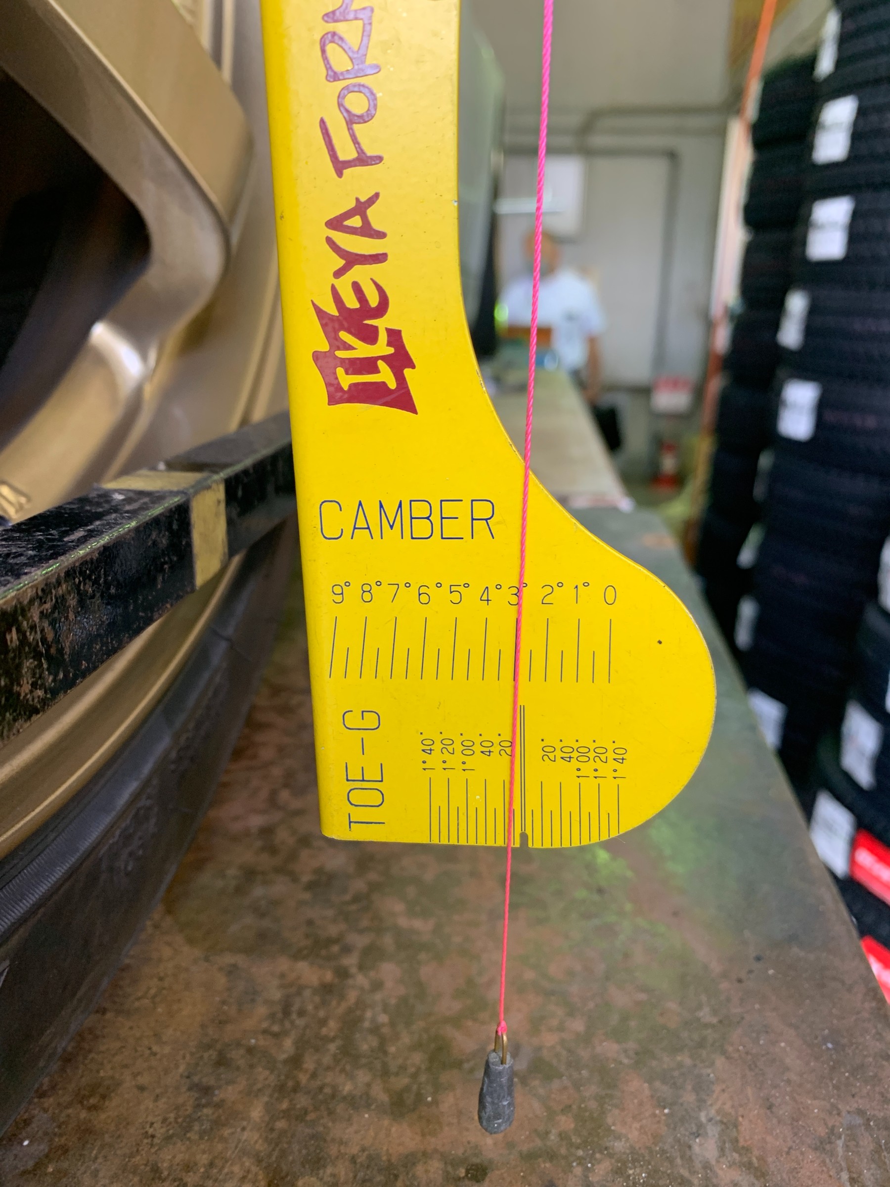 入庫時はリアがやや強めにインに、フロントがかなり強めのトーアウト状態でした。