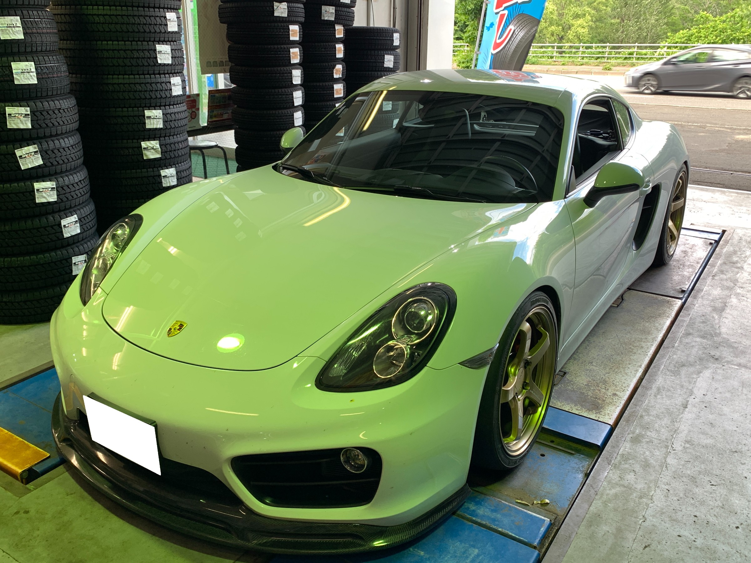 少し調べてみると、ケイマンの純正のアームではキャンバー角付けられないようで、ポルシェの他車種の純正のアームを使ってキャンバー調整したりするようですね。