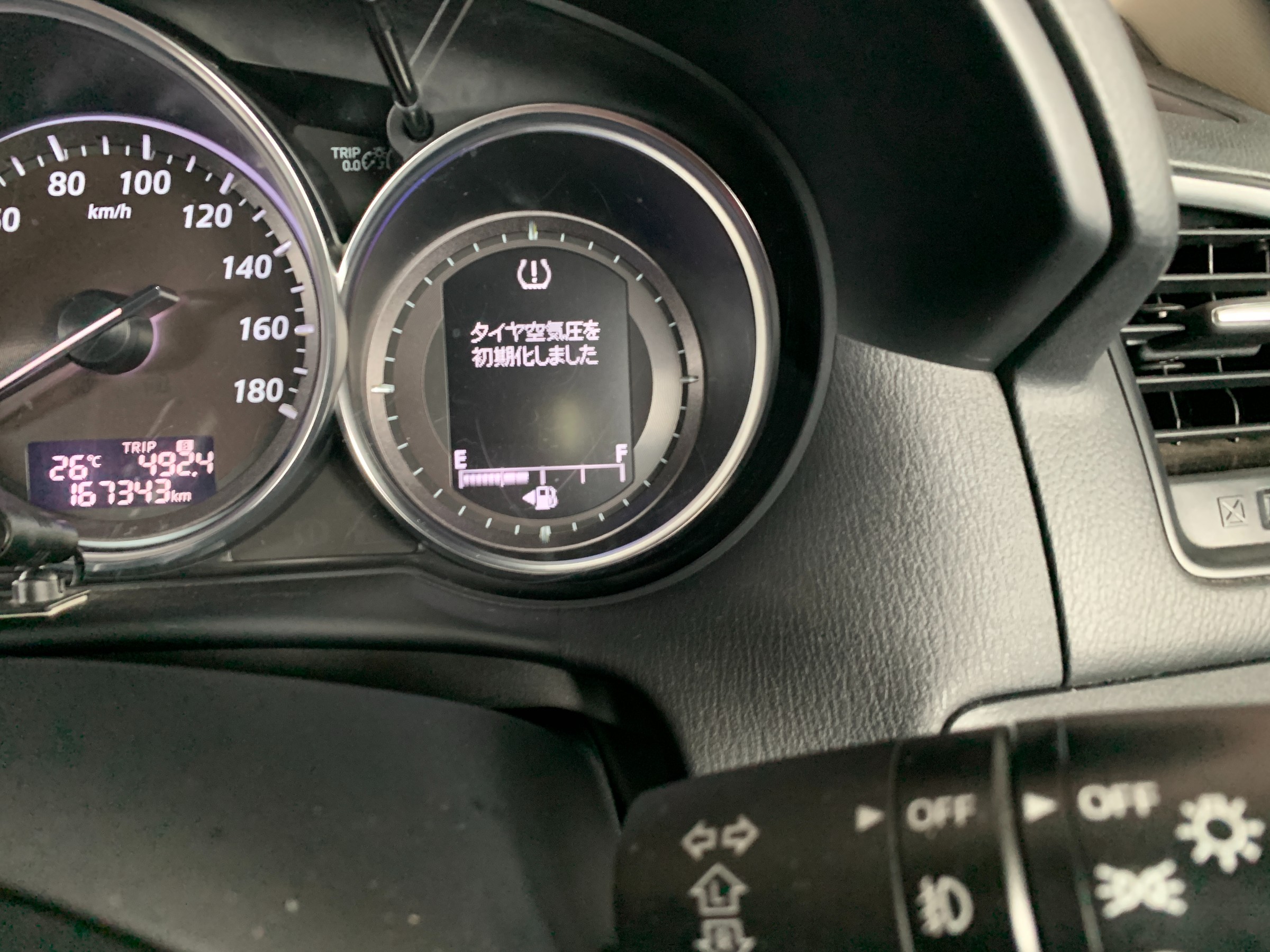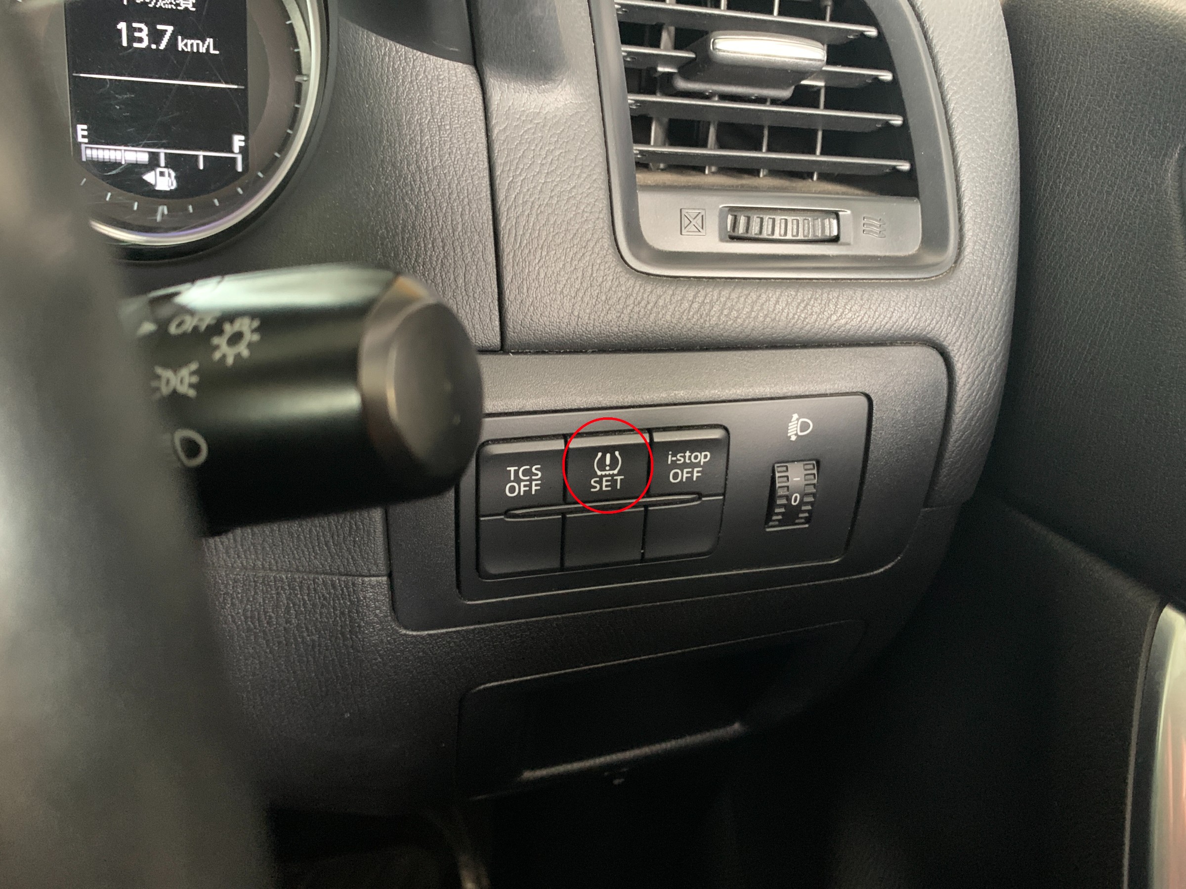 同じモデルのCX-5でも年式でリセット方法は微妙に変わります。この車輌はパネルにボタンがあるタイプです。