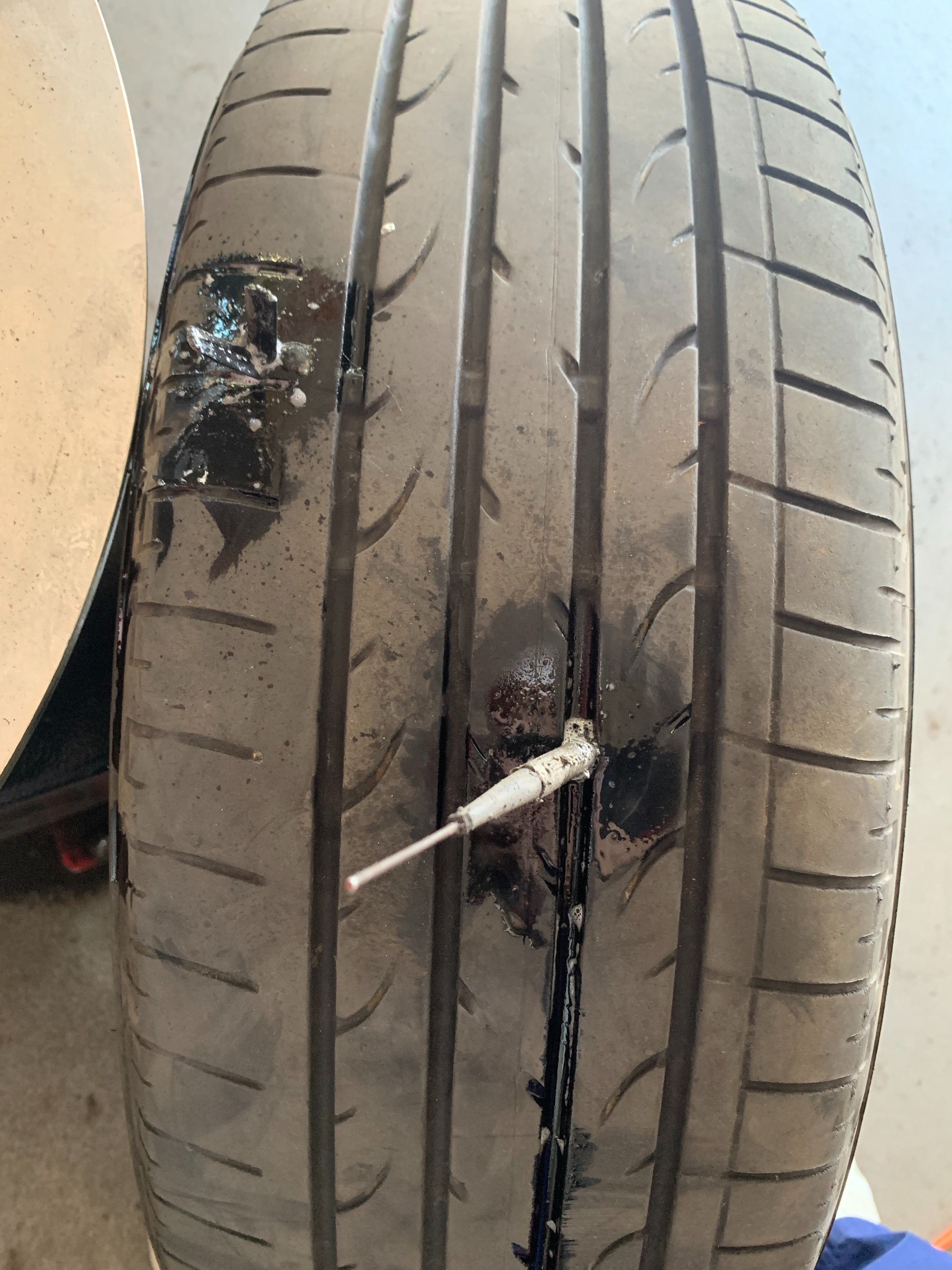 以前パンク修理されていたところからの漏れでした…