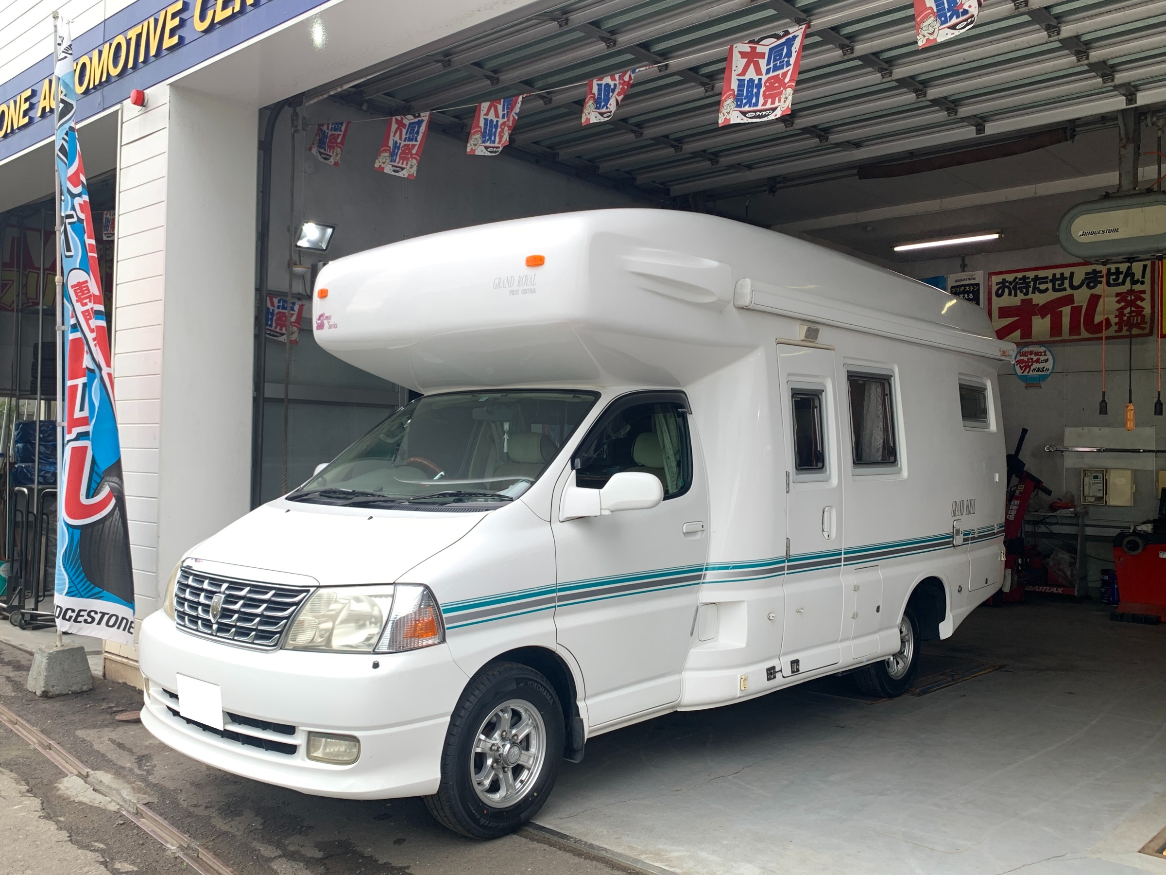 グランドハイエースキャンピングカーの指定サイズは205/70R15が基本ですが、前オーナーの時から215が履かれていたようです。 外径が一回り大きくなりますので厳密に言うとスピードメーターの誤差は出てきます。