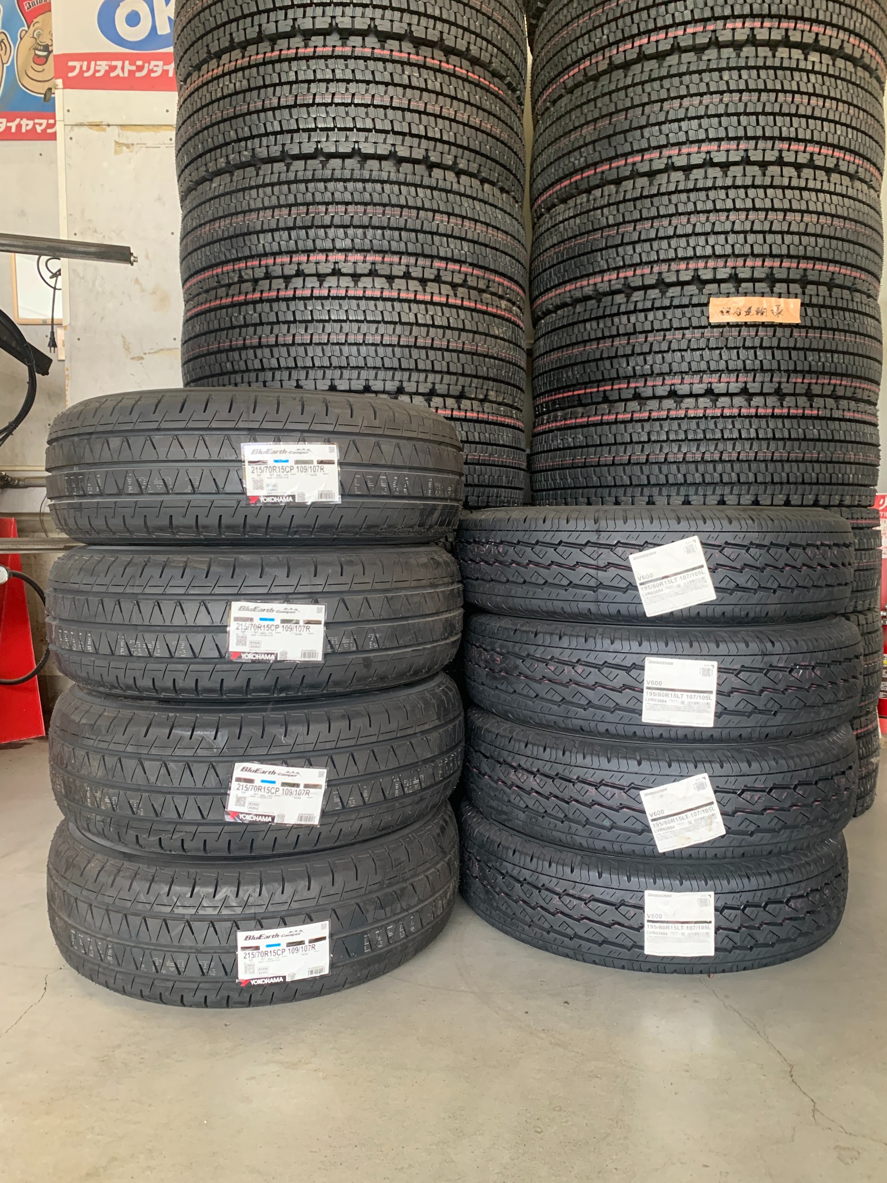 うちの店を担当してくださっているヨコハマのセールスさんに訊ねると、キャンピングカー用は耐摩耗性が商用車用タイヤより上だということです。