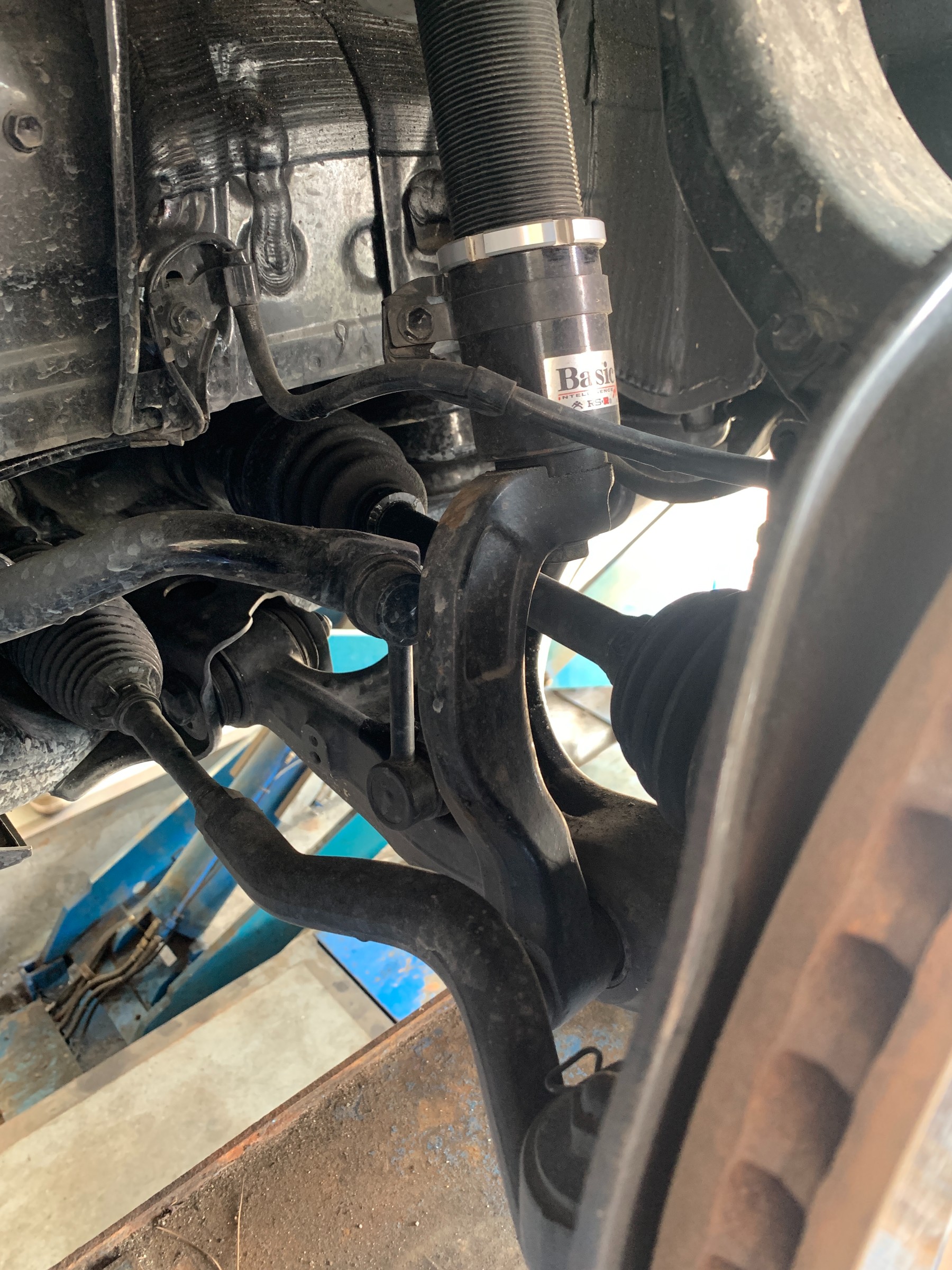 強めにバンプしても超ギリギリで爪をかわします。 試乗をお願いしましたが、ハンドルセンターのズレもタイヤの接触もなさそうでした。