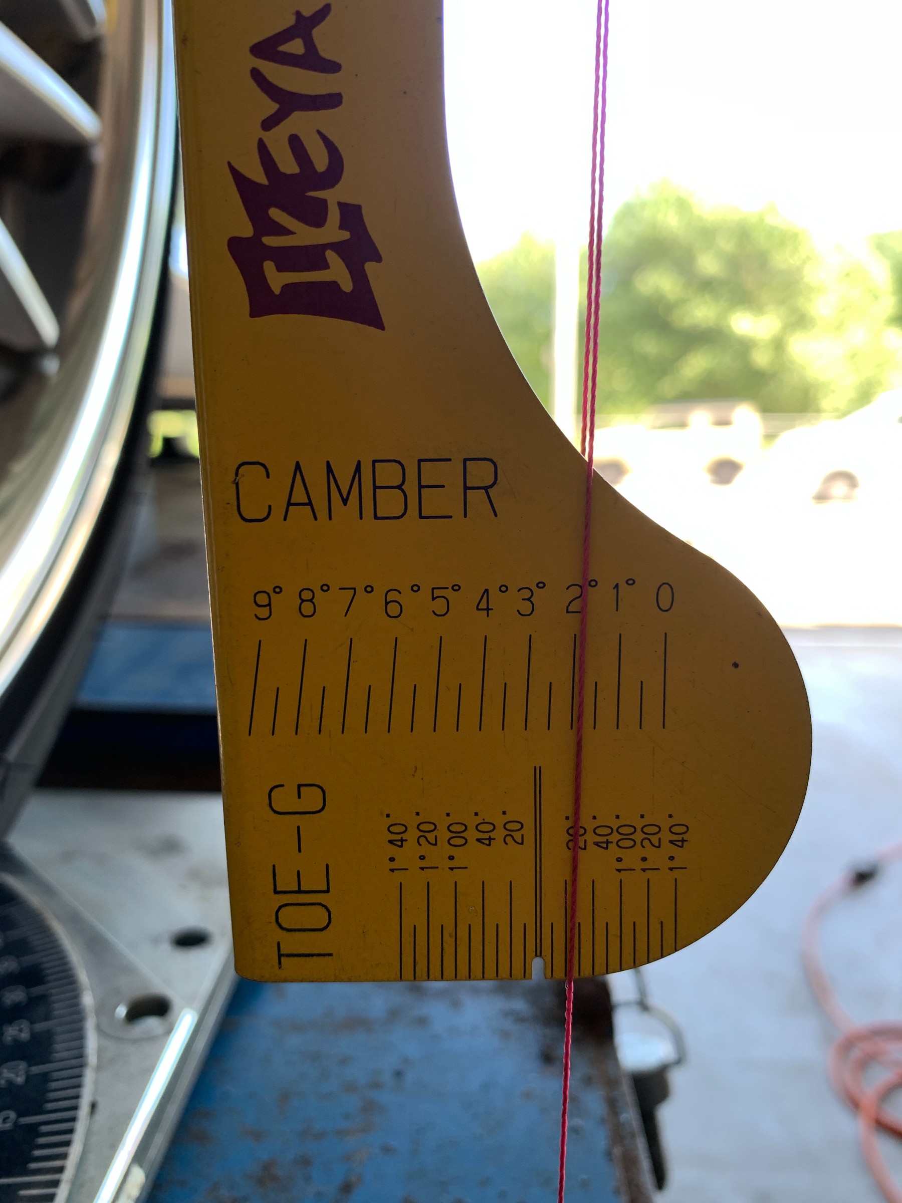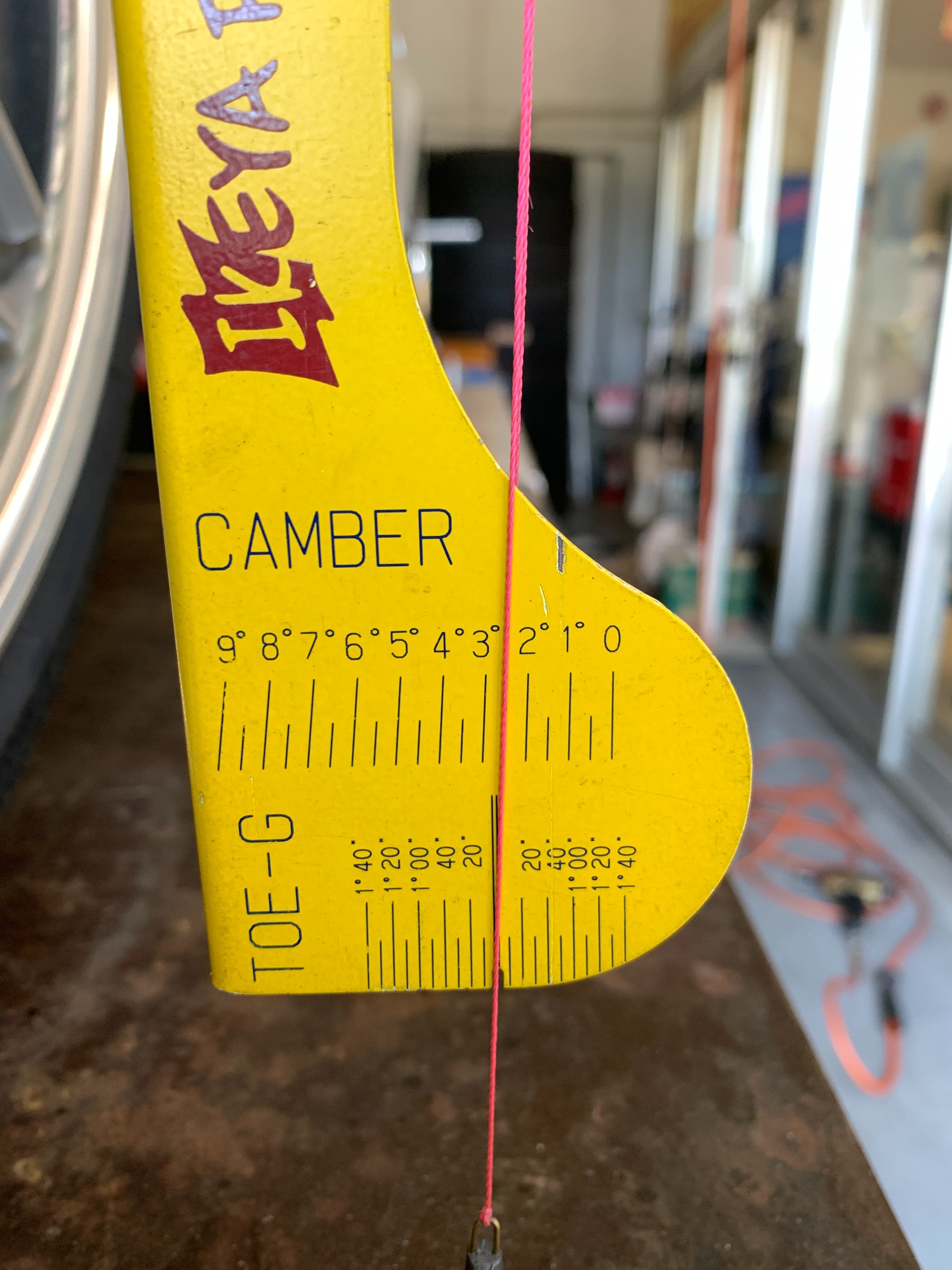 キャンバー調整機構は備わっていないのでこのままトー調整に移りましたが、まさかまさかのトータルト― イン0.5mmという絶妙な数値Σ(゚Д゚;≡;゚д゚)