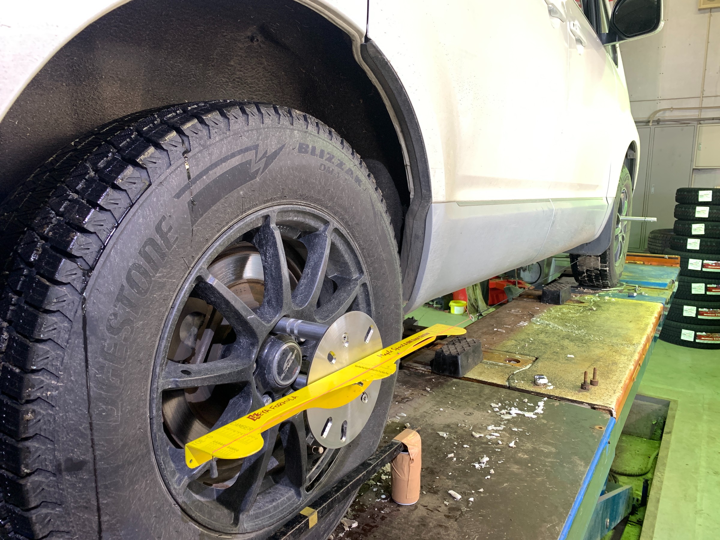 キャンバー角はそのままに、トーの測定するとトータルで3mmほどトーアウト状態でした。