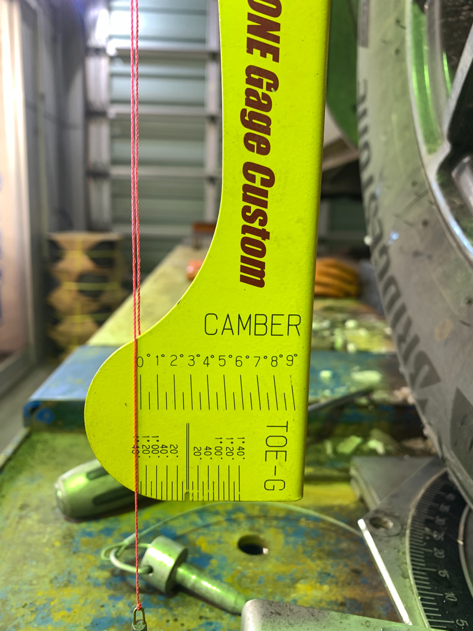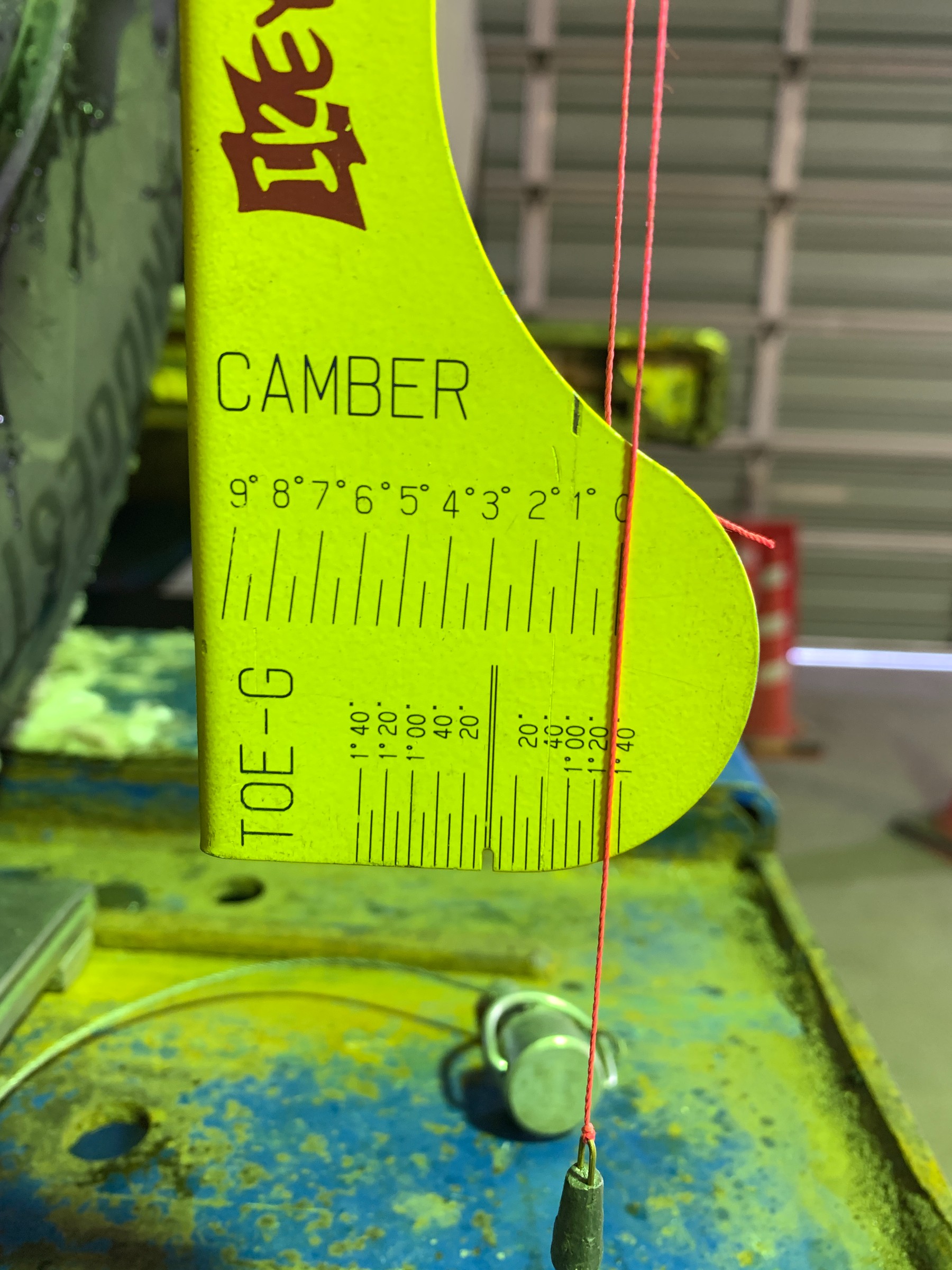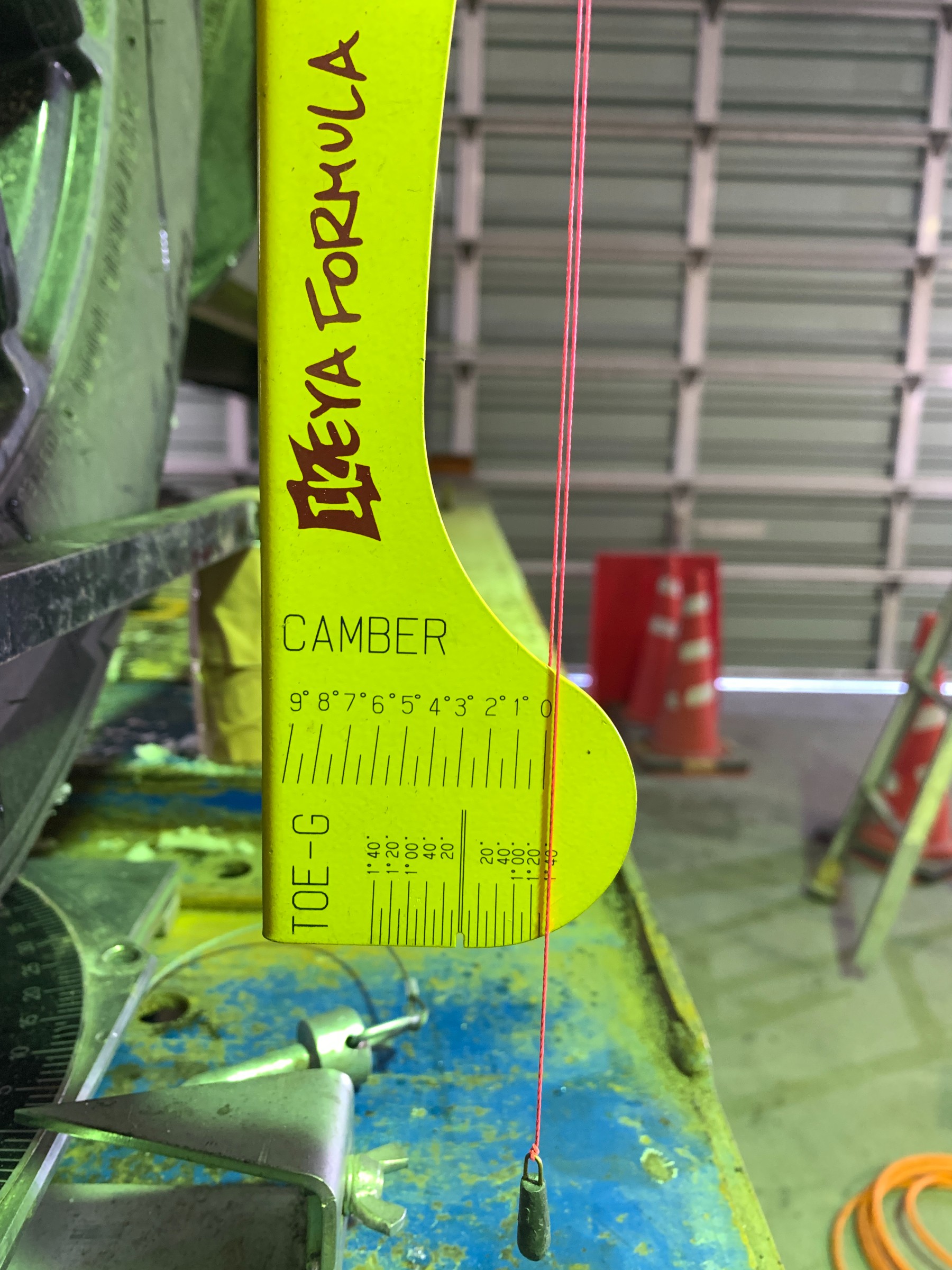 左右ともに0°5′ 即ちポジティブキャンバーです。 しかしこれはメーカーの基準値内に収まっているので一旦このままトーの測定へ。