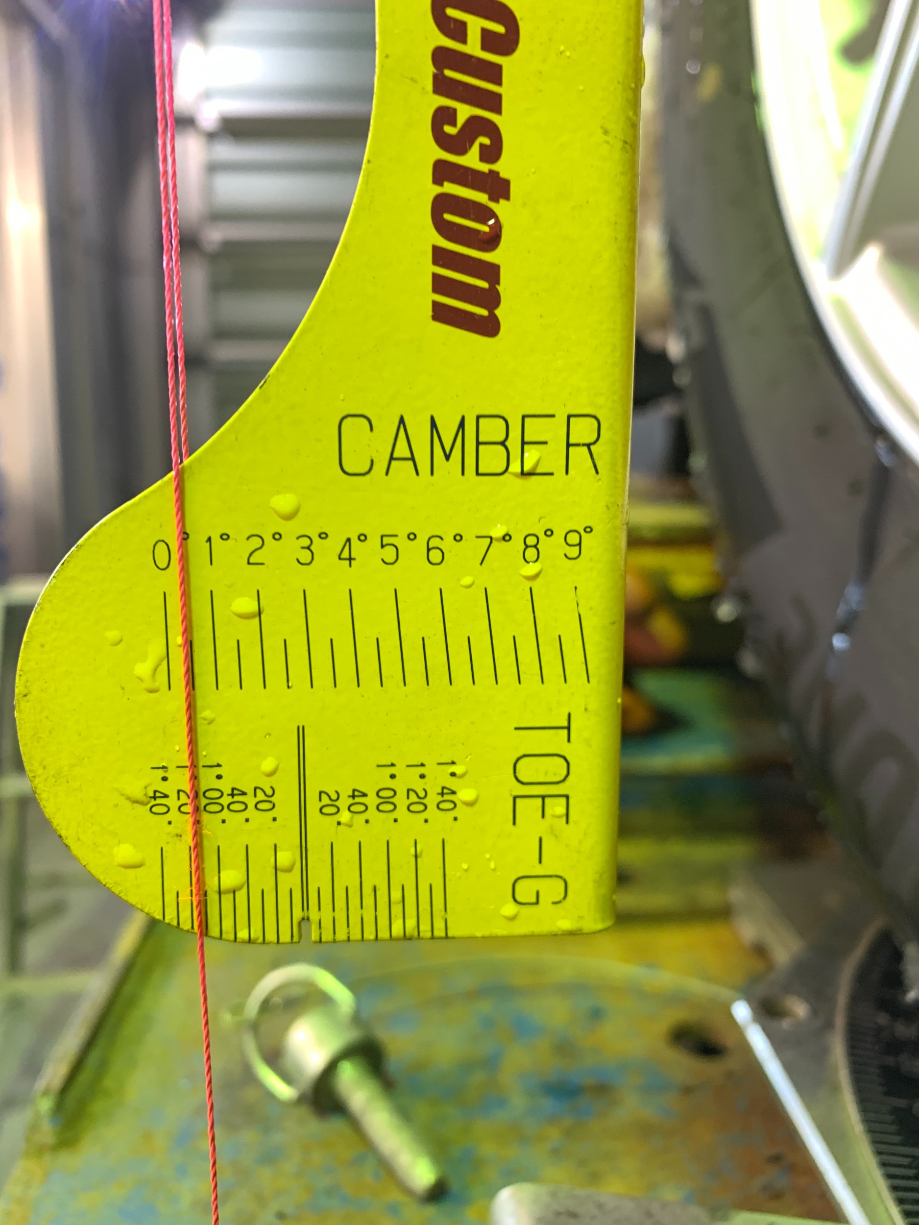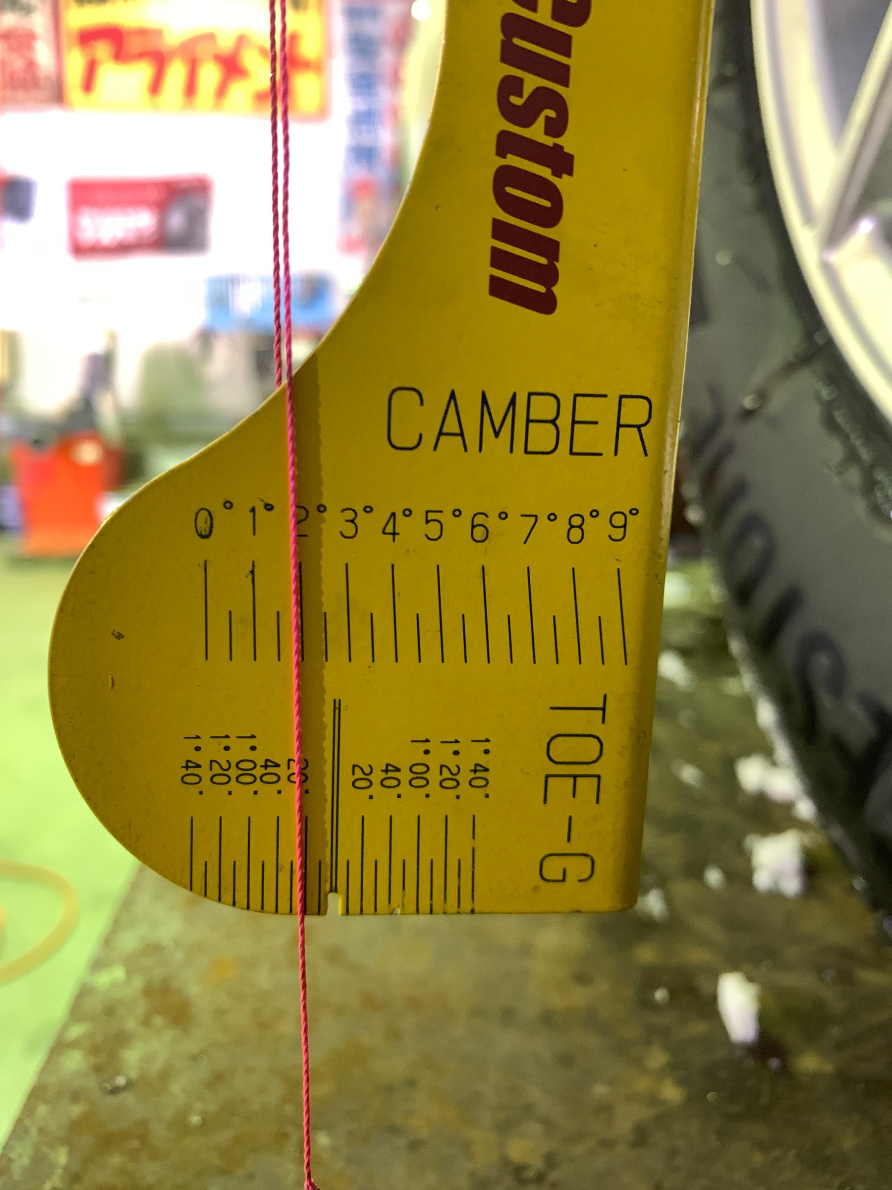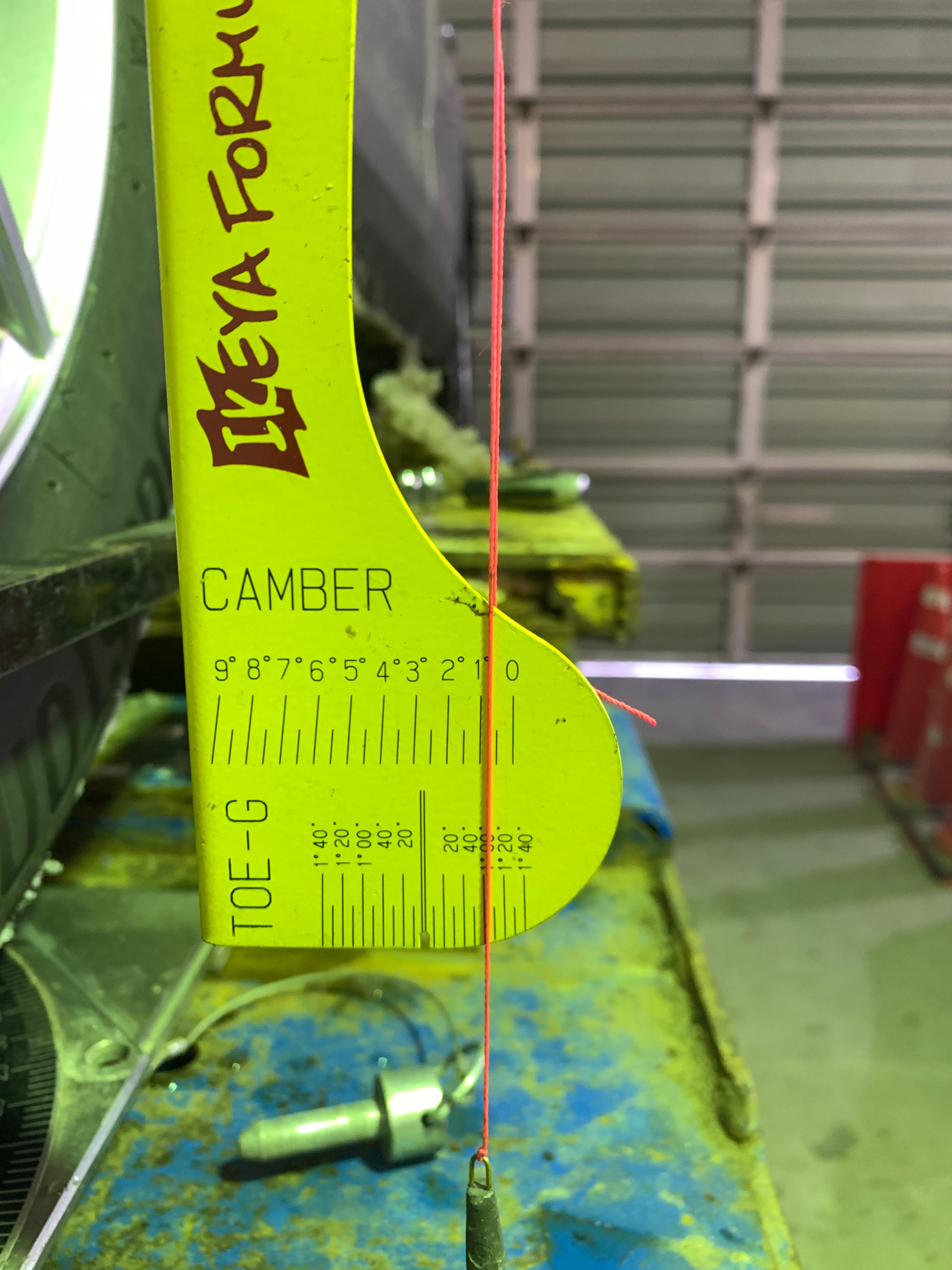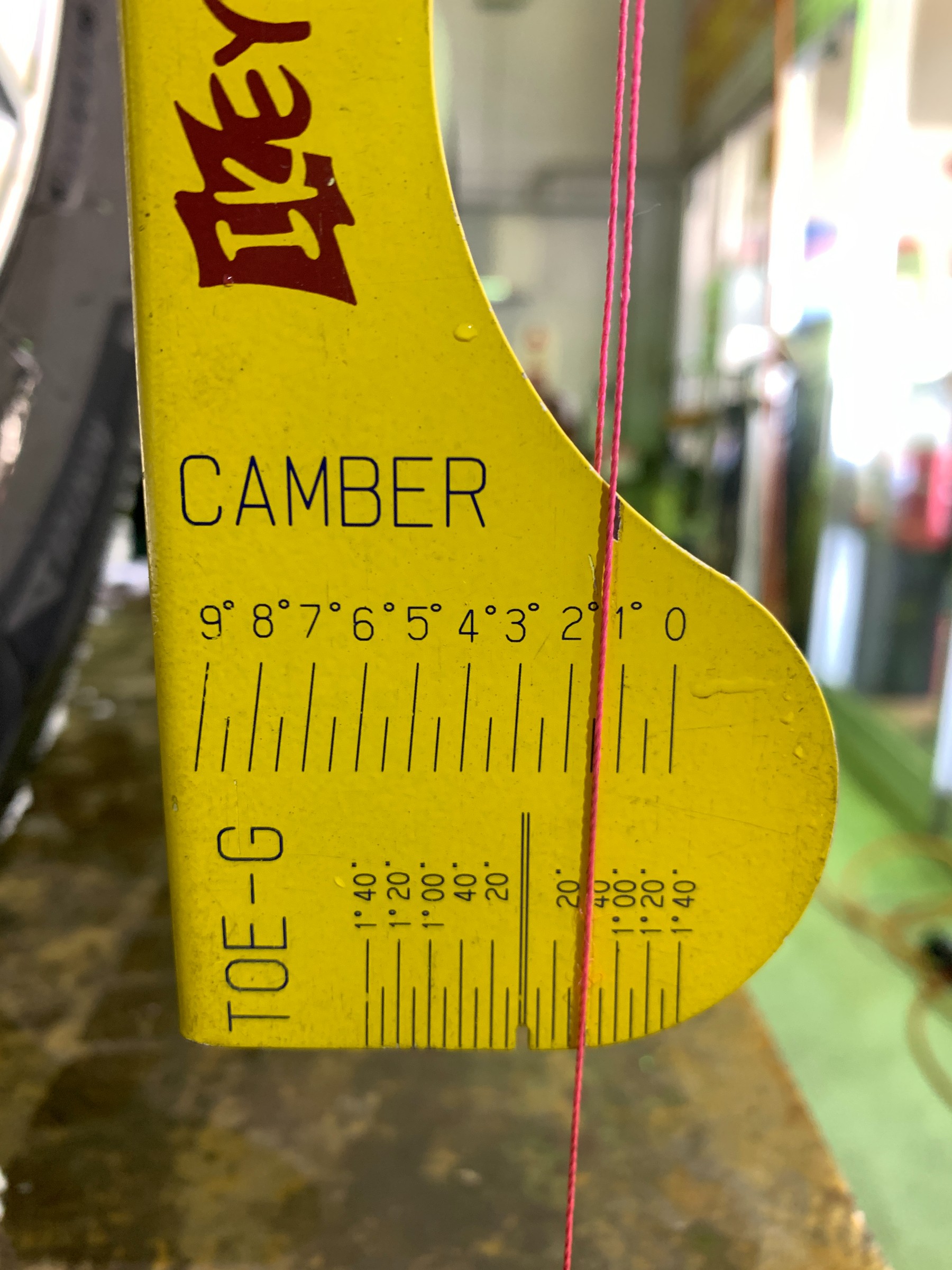 この数値を踏まえてトーの測定と調整に移りますが、最初の測定ではトーアウトになっていました。