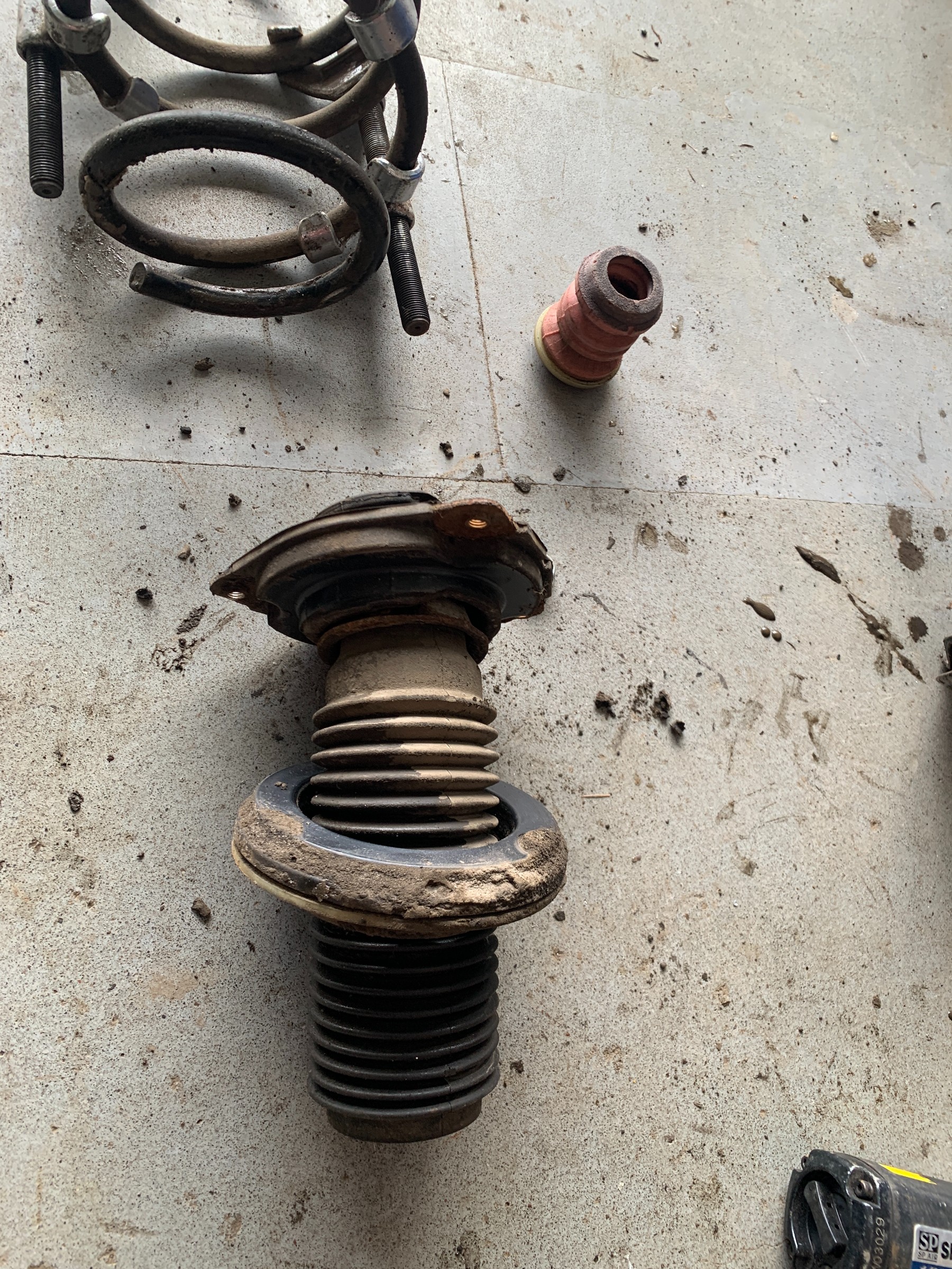 ショックアブソーバーは現状のものをそのまま使用、アッパーとロアの純正スプリングシート(インシュレータ)は法人様でご用意していただきました。