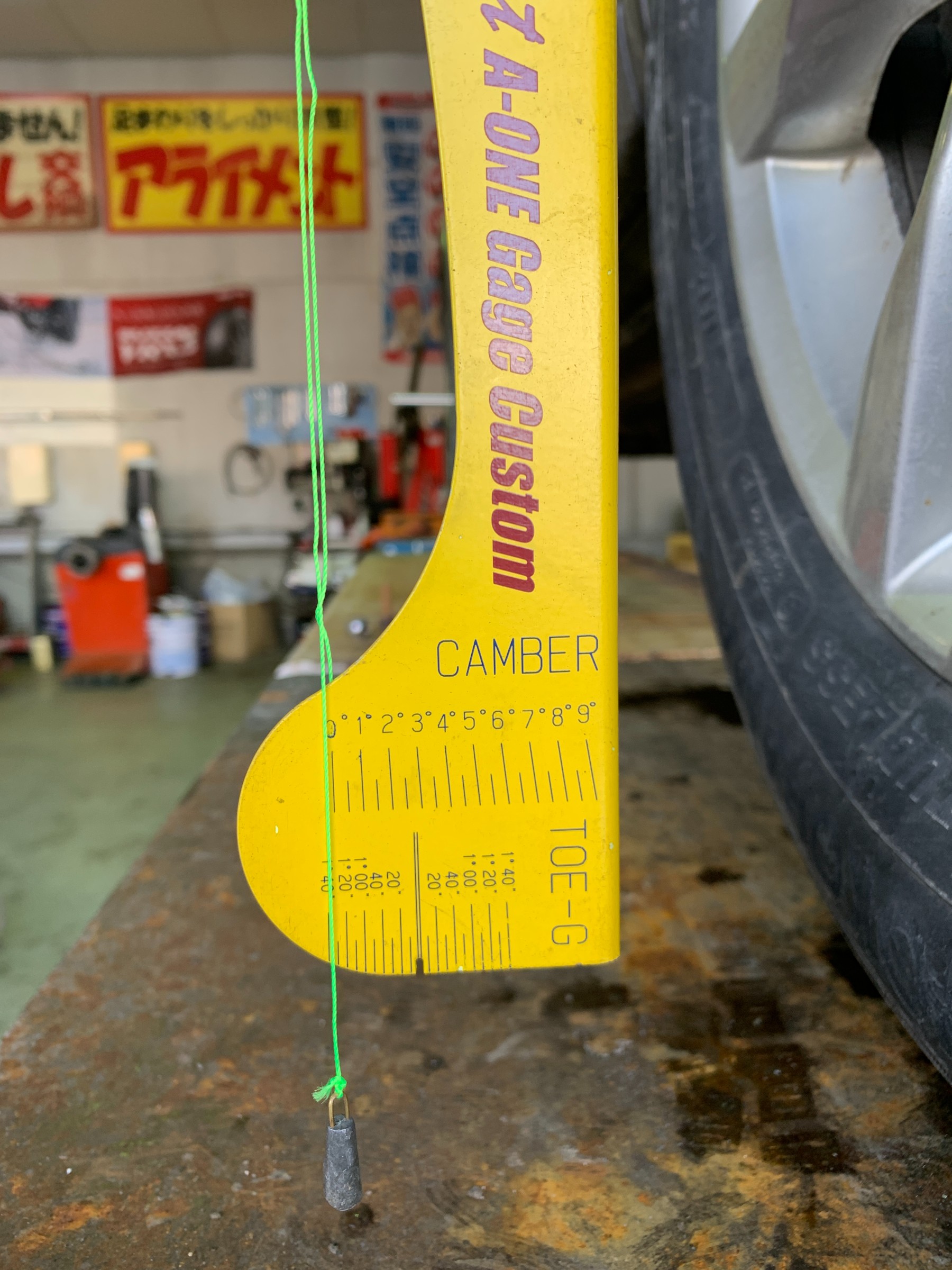 左後のキャンバー角は…ポジティブ それはそうですよね、車高を上げているんですから…ん~