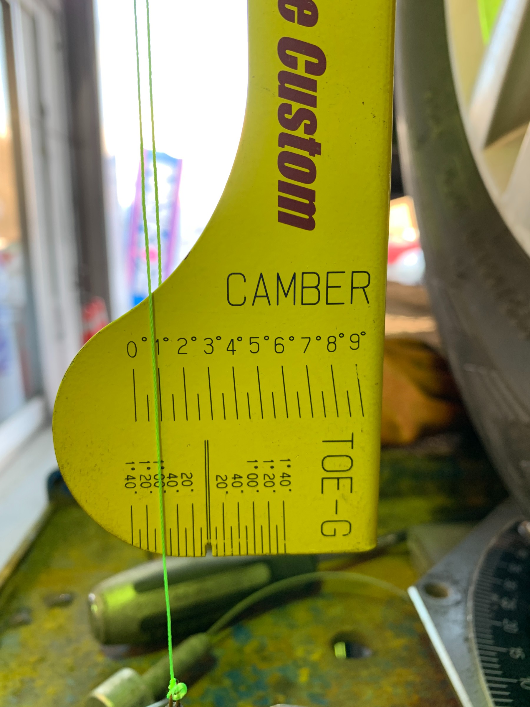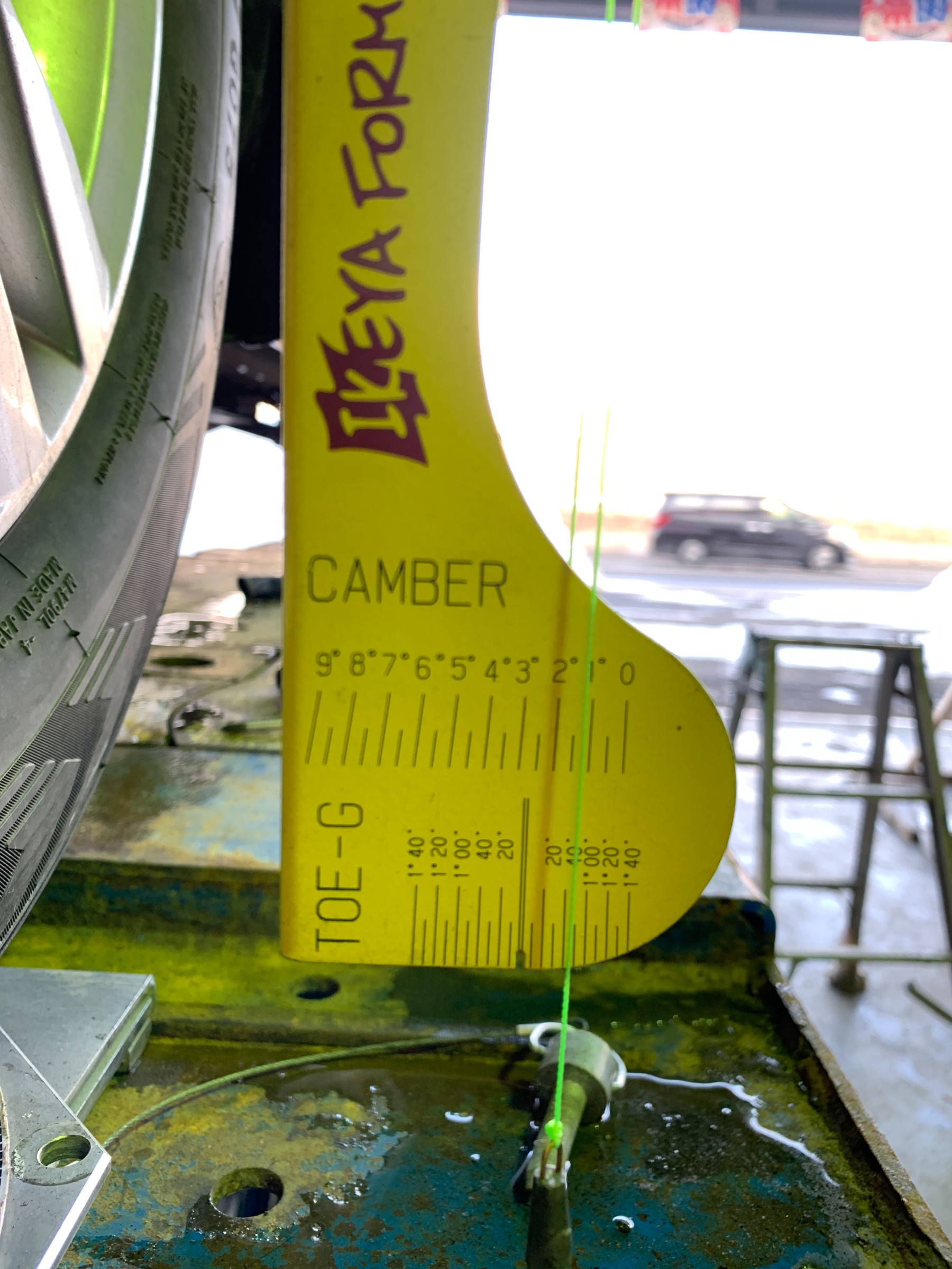キャンバー角が-1°なのでトータルト―は、本当に本当に気持ち強めにインにセットしました。