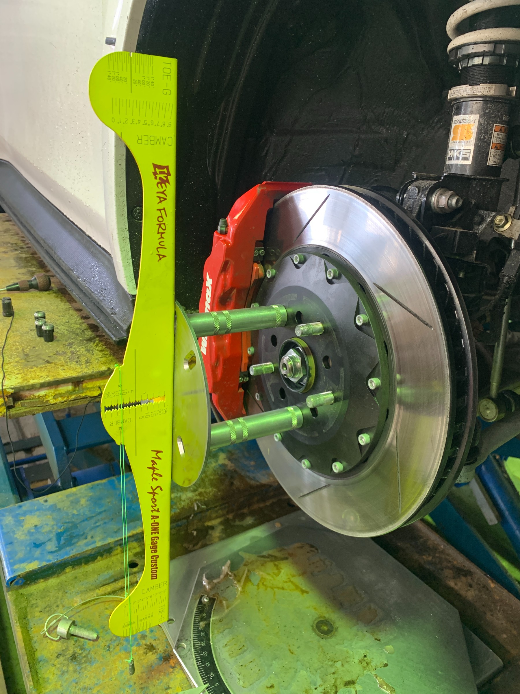 アライメント調整後、オーナー様の希望でブレーキのエア抜きも実施。 オーナー様自身でビックキャリパーに交換されたようです。 エア抜きはしたとのことですが、念のため改めてエア抜きをしてほしいということでした。