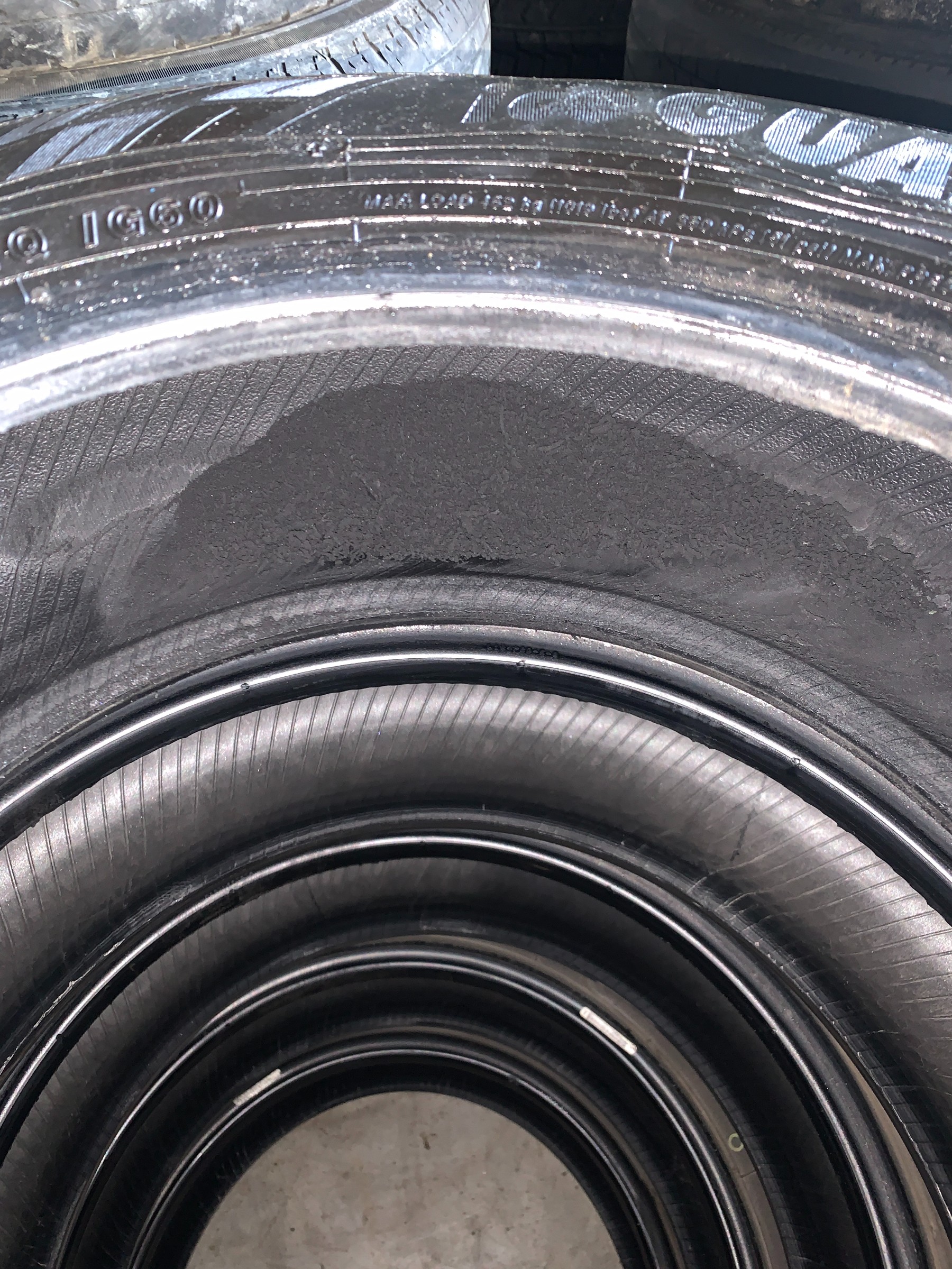 タイヤの中は破片だらけ。 こうなってしまっては修復は不可能です( ノД`)