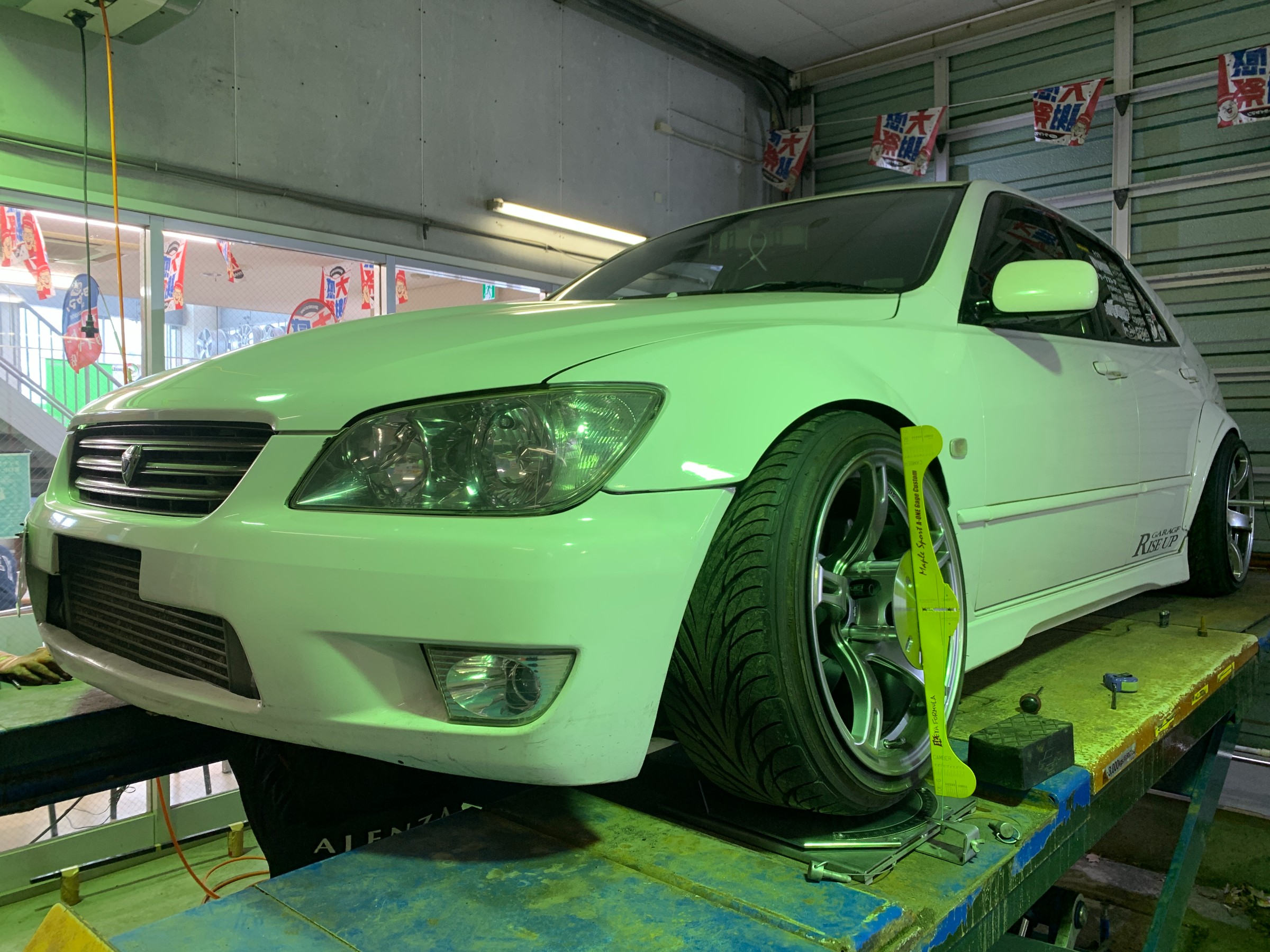 オーナー様は昨年持ち込みによるタイヤ組替をご依頼され、その時にあれこれ作業やりますよーとお話をしていたのですが今回は車高調交換とアライメントのご用命いただきました。