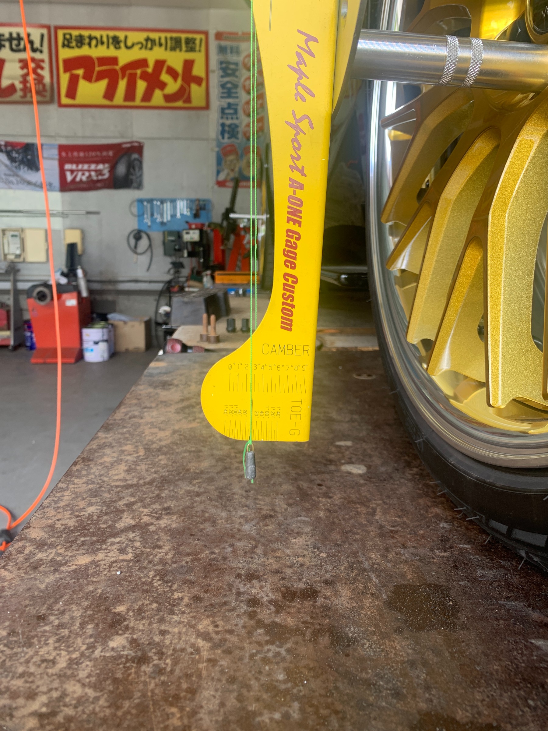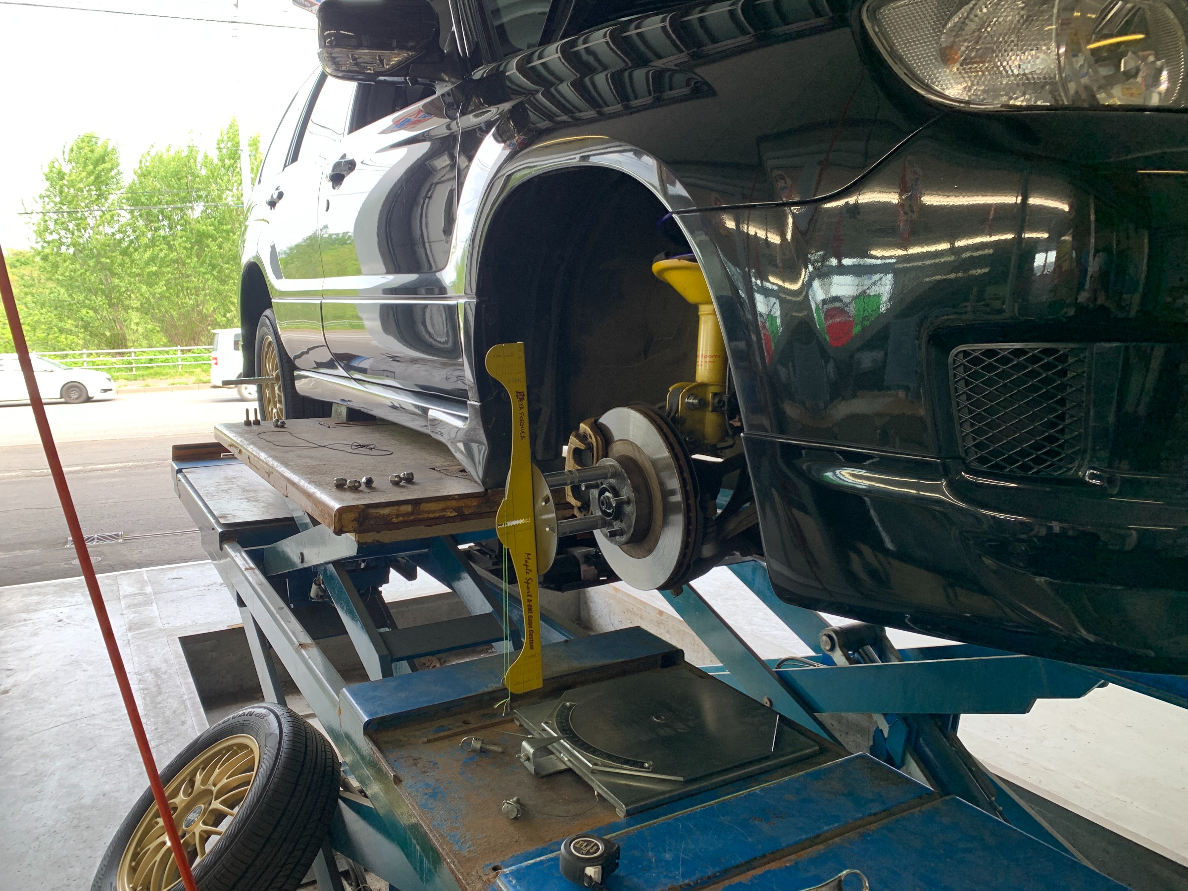 フロントもキャンバー調整は出来ない車高調だったので、トー調整をしっかりと詰めていきます。