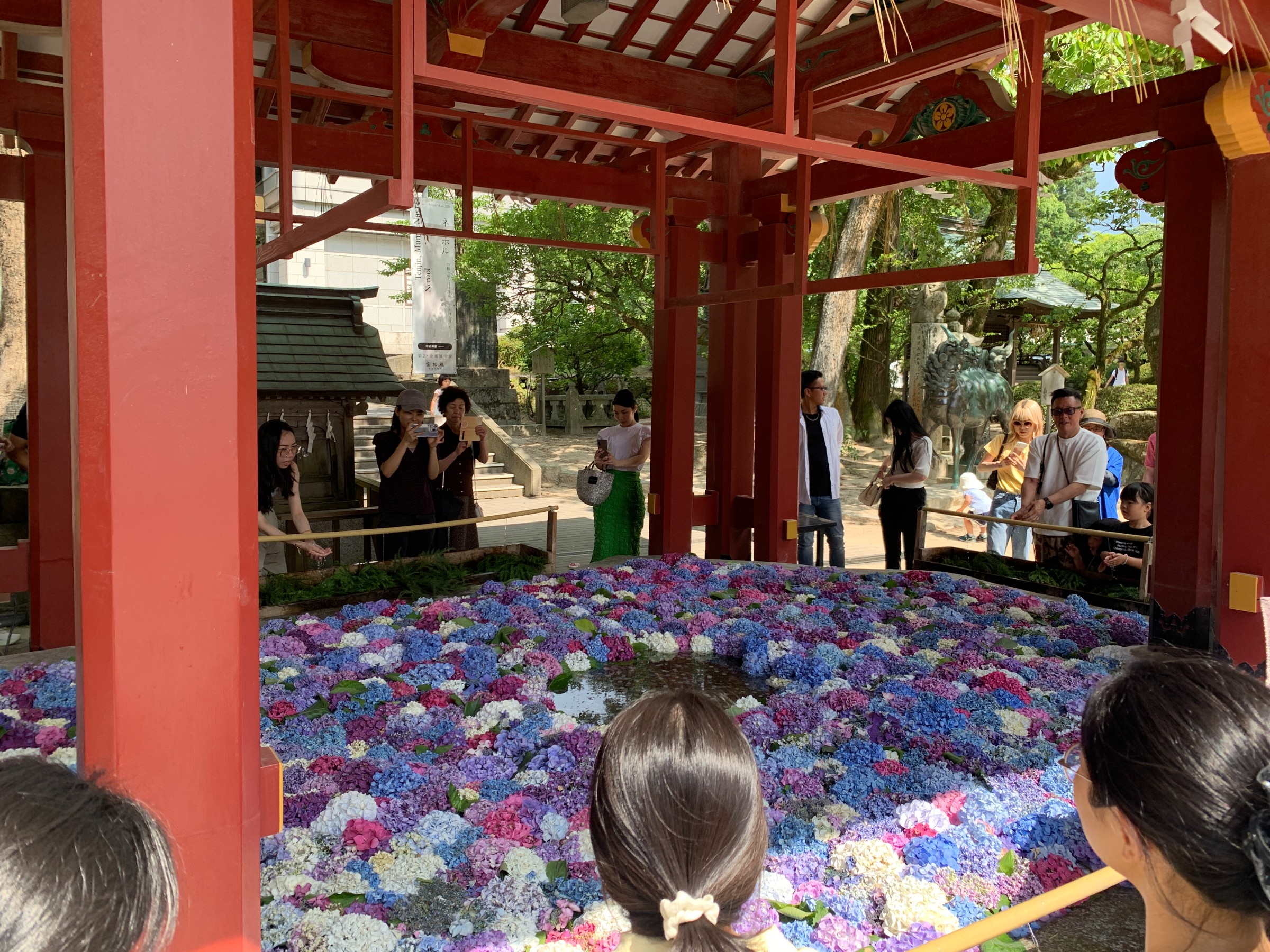 ニュースにもなっていましたが、鮮やかな紫陽花が浮かぶ花手水。