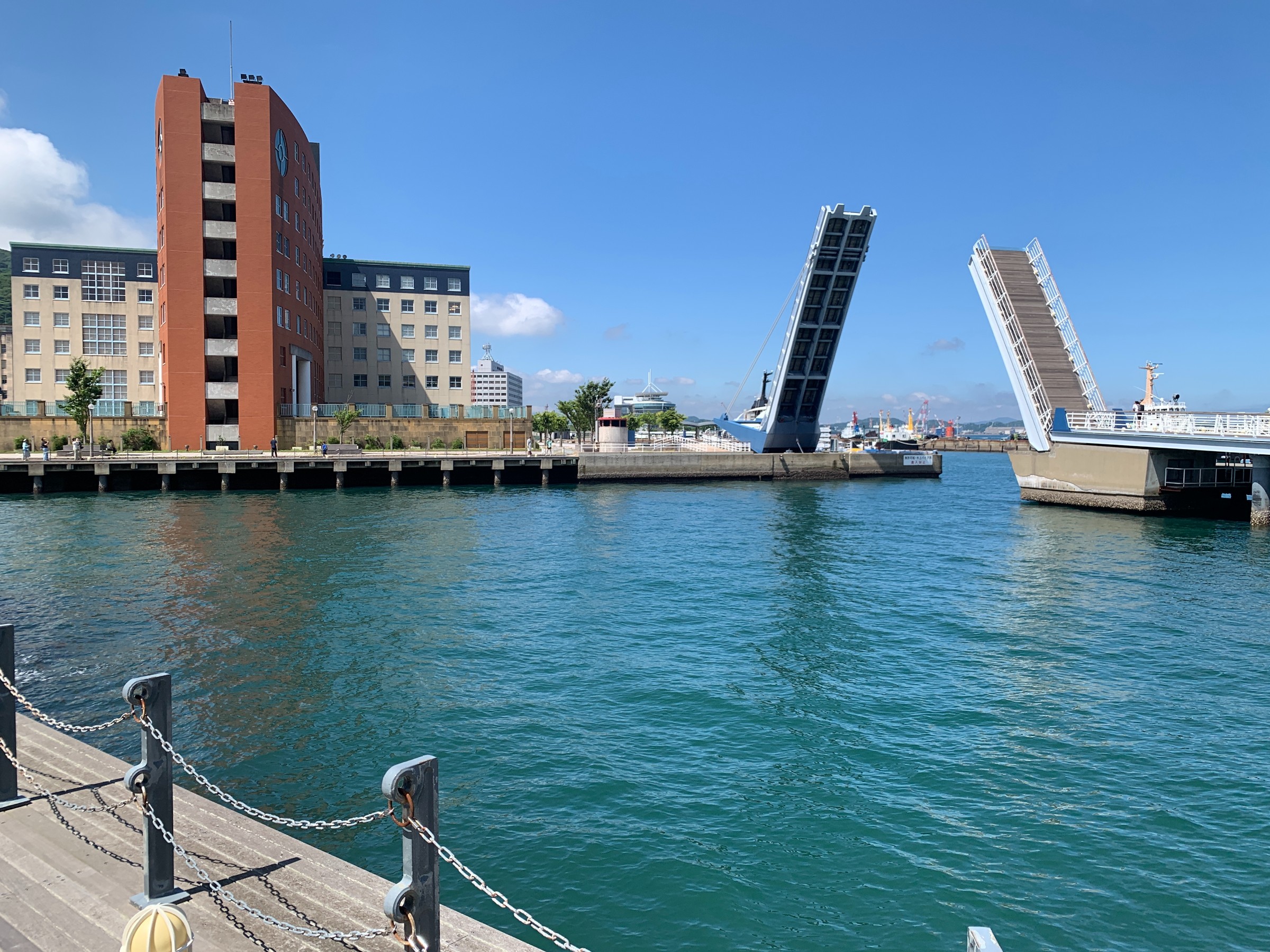 一時間のうち数十分だけ跳ね上がる橋。タイミングバッチリ!!