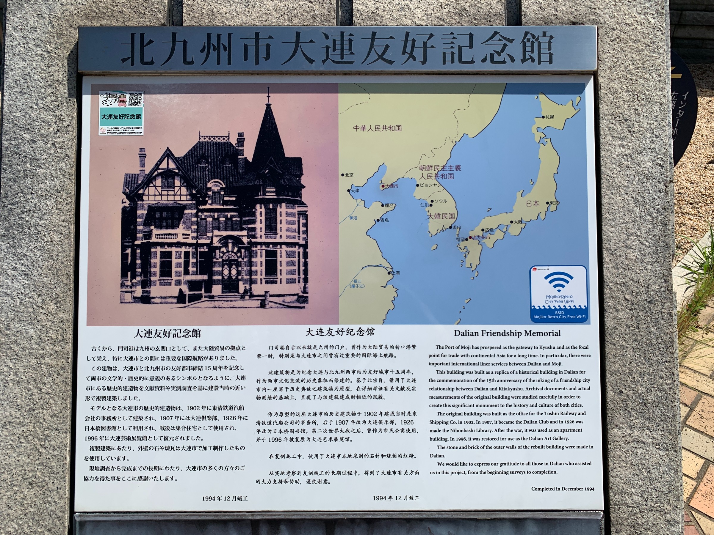 門司港レトロハイマートを背に大連友好記念館