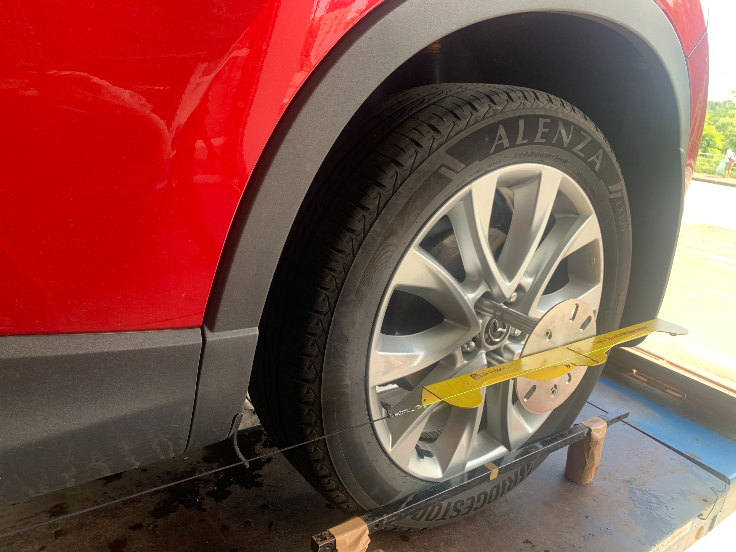 確かにタイヤの減り方がトーアウトな減り方してはいたんですが、過度ではなかったので今まで提案はしなかったんですよね~(;´Д`)オーナー様も全然気にしていなかった様子でしたし…