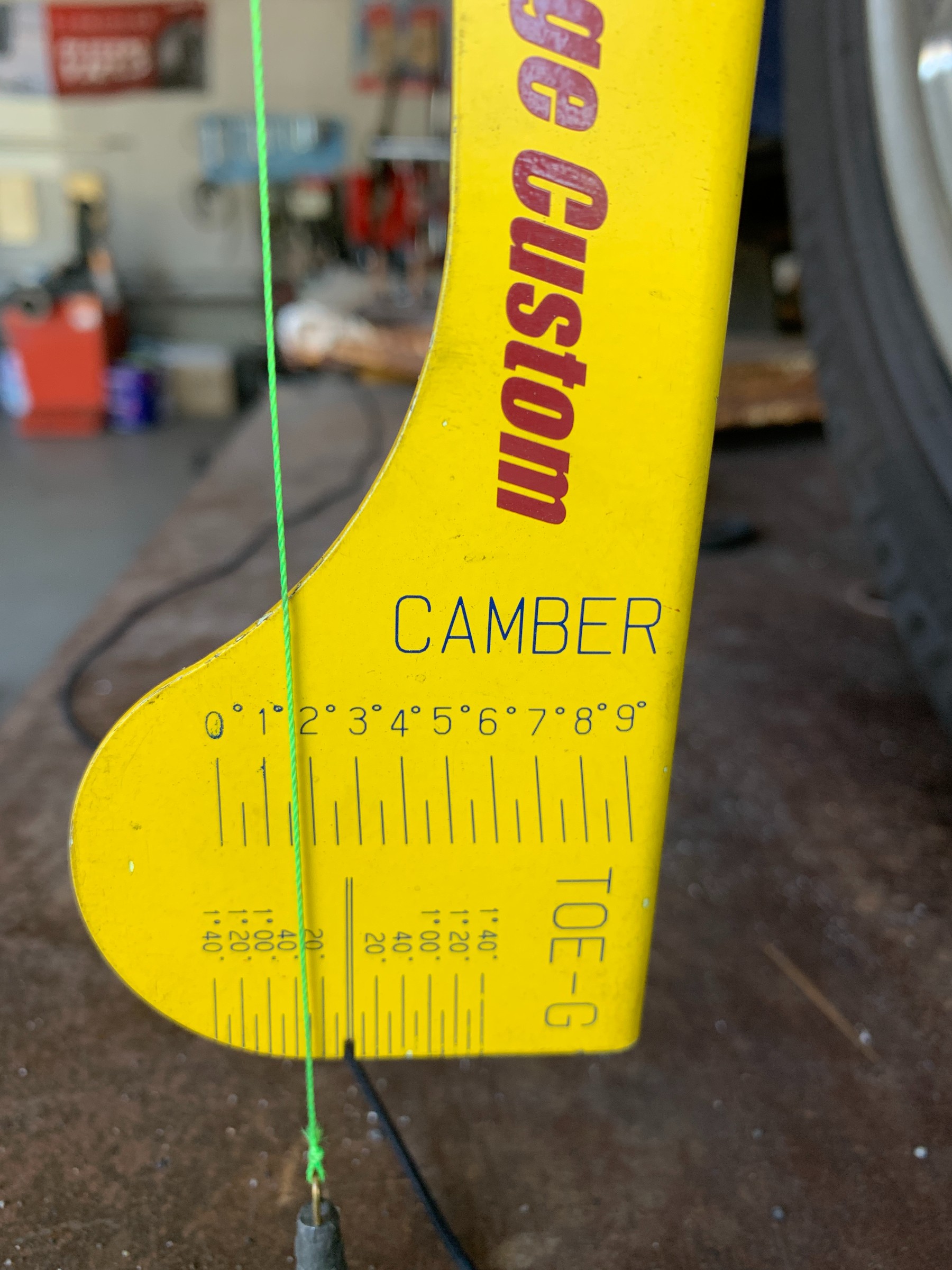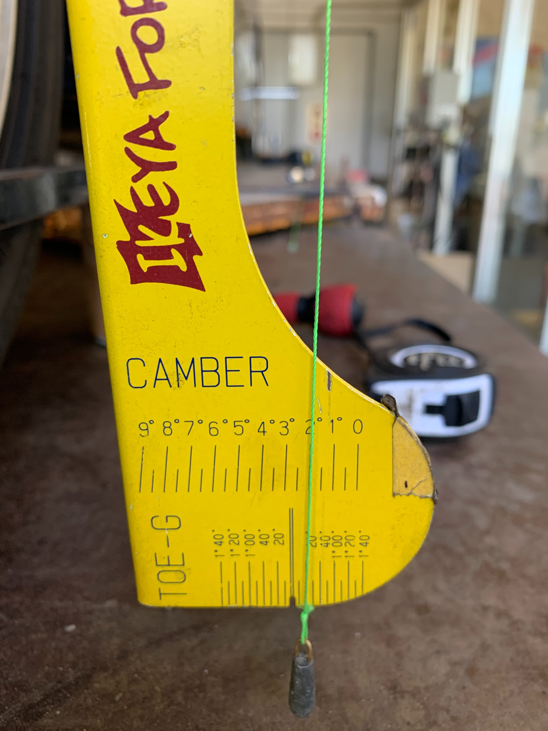 もう一度キャンバー角をチェックします。 デジタルテスターなら同時に全て診れるから、その点は致し方ないとはいえアナログのやり方の弱点ですよね。