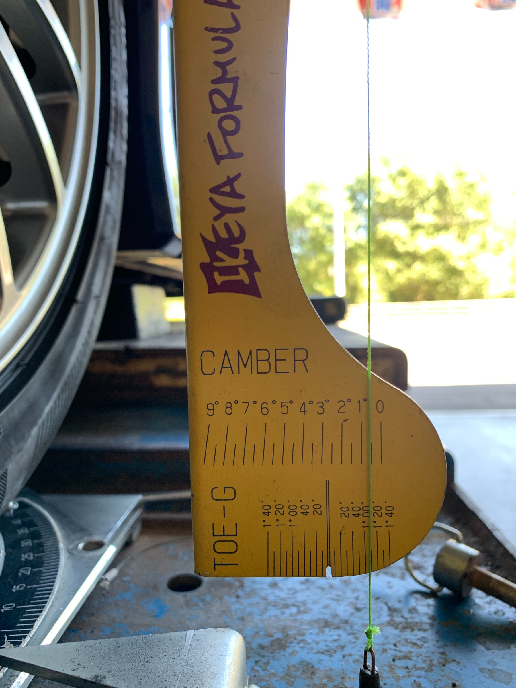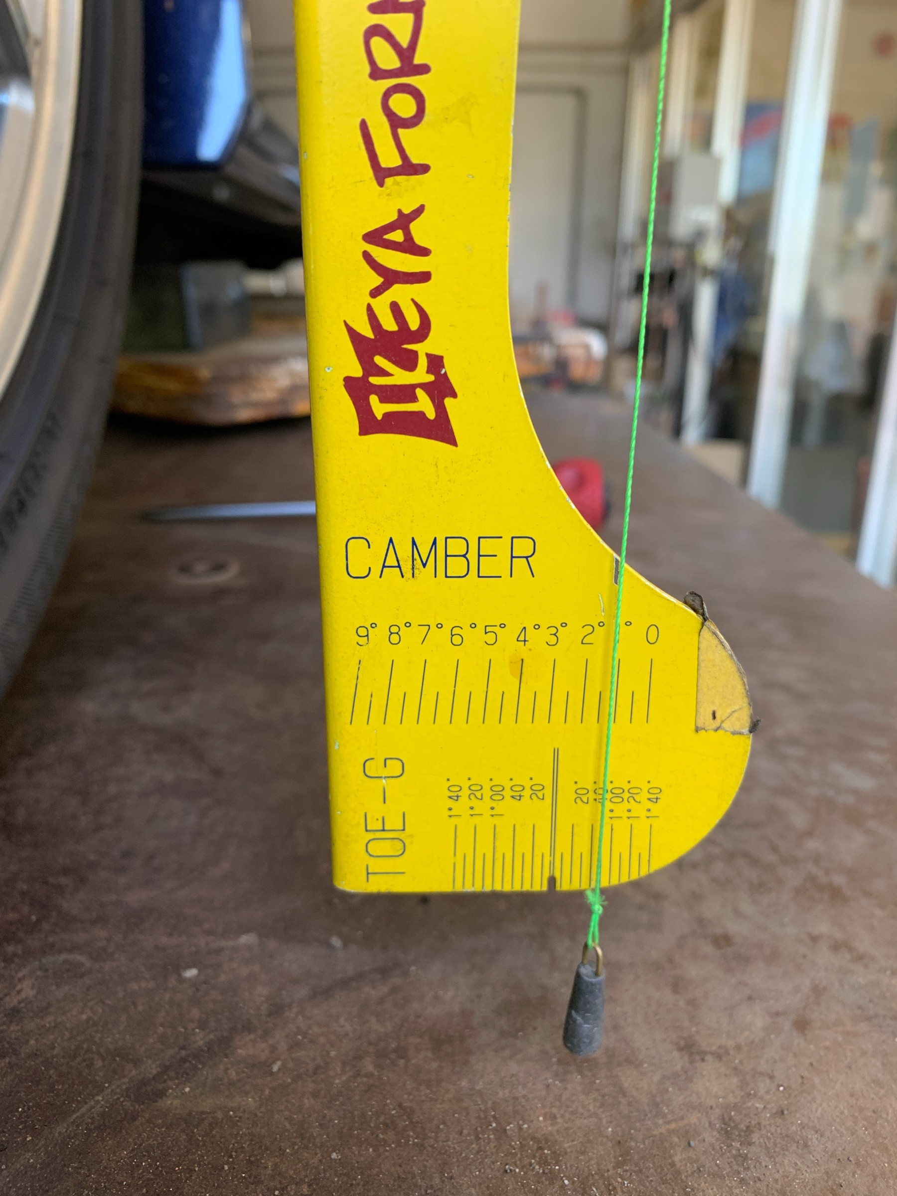 ショック交換前の、8月下旬の最初の測定時とほぼ同じ状態のキャンバー角で、トーもベストなところになりました。