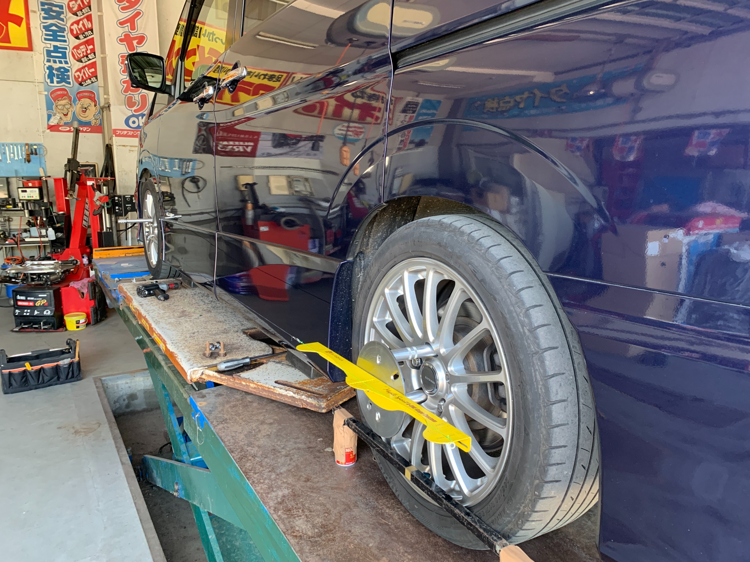 高速走行するとどうも違和感が…ということで8月の下旬にアライメント調整で来店。