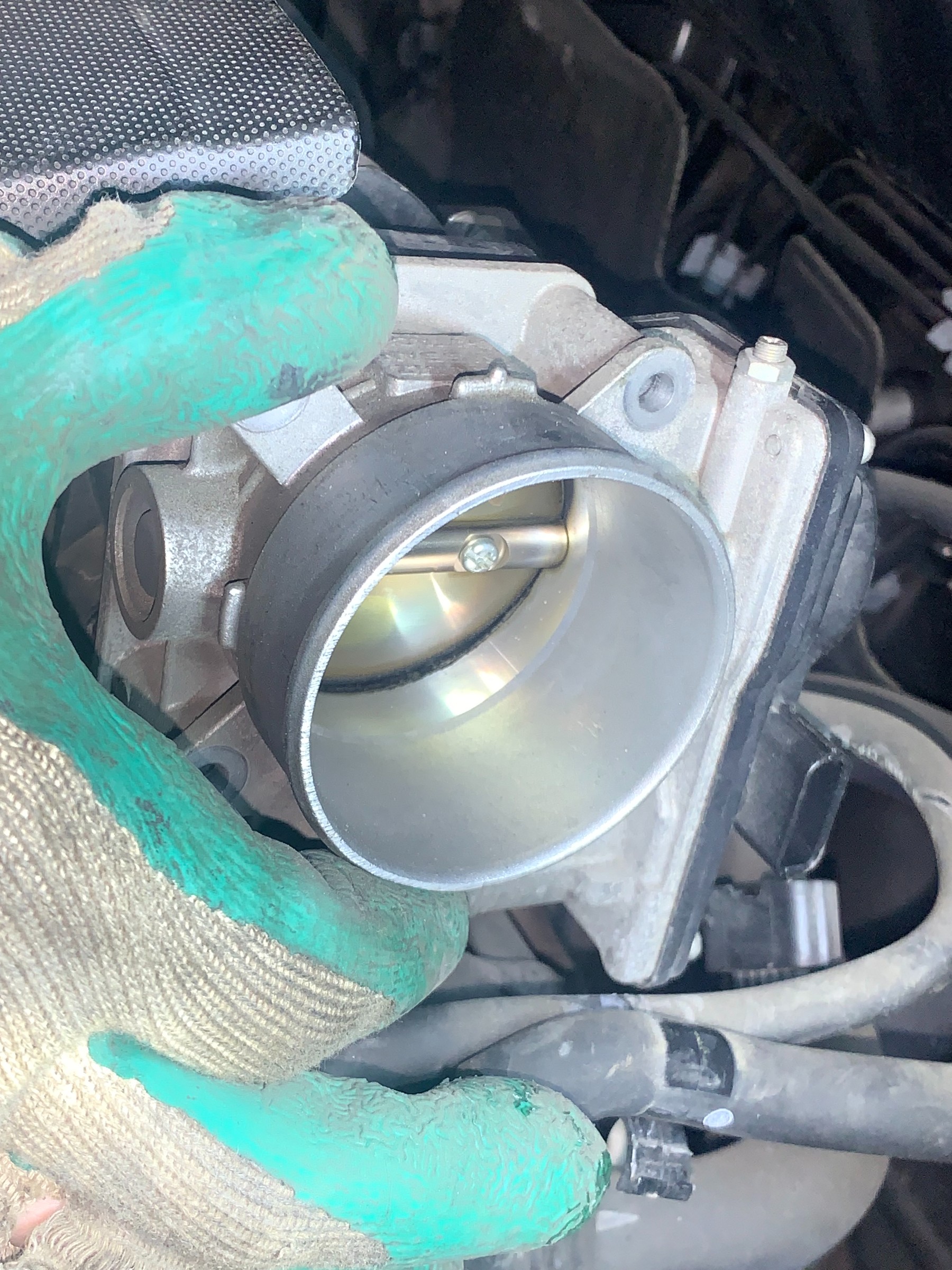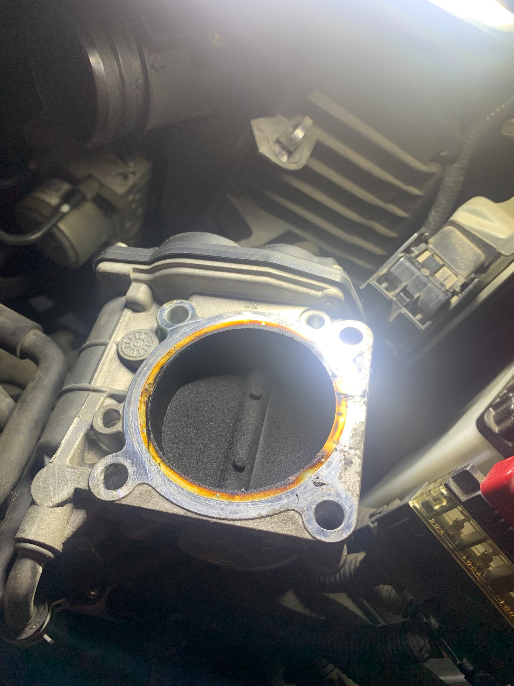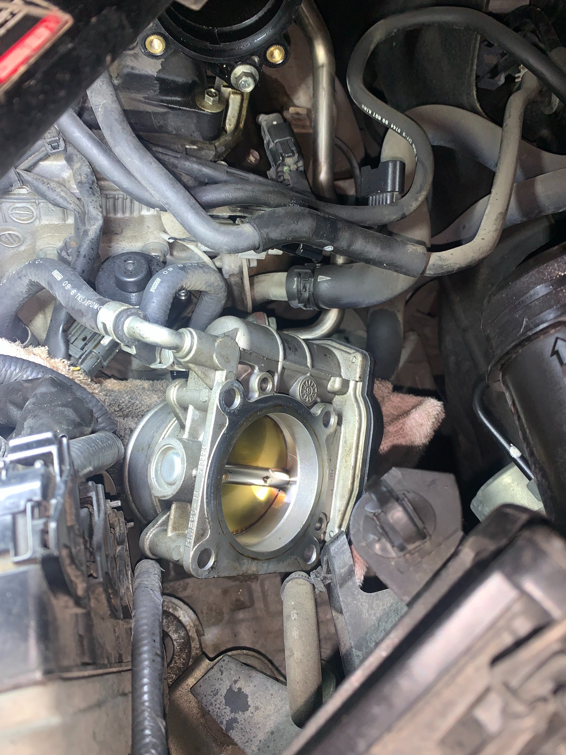 スロットルとインマニの間にある部品を洗浄。