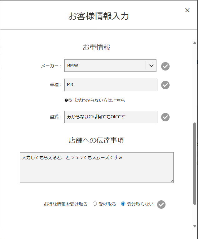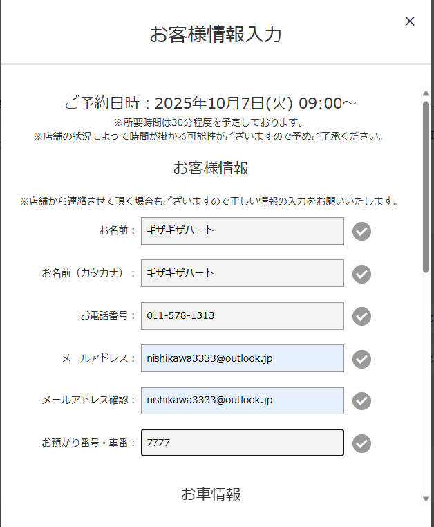 予約画面で【車種】・【型式】を手入力する項目について
