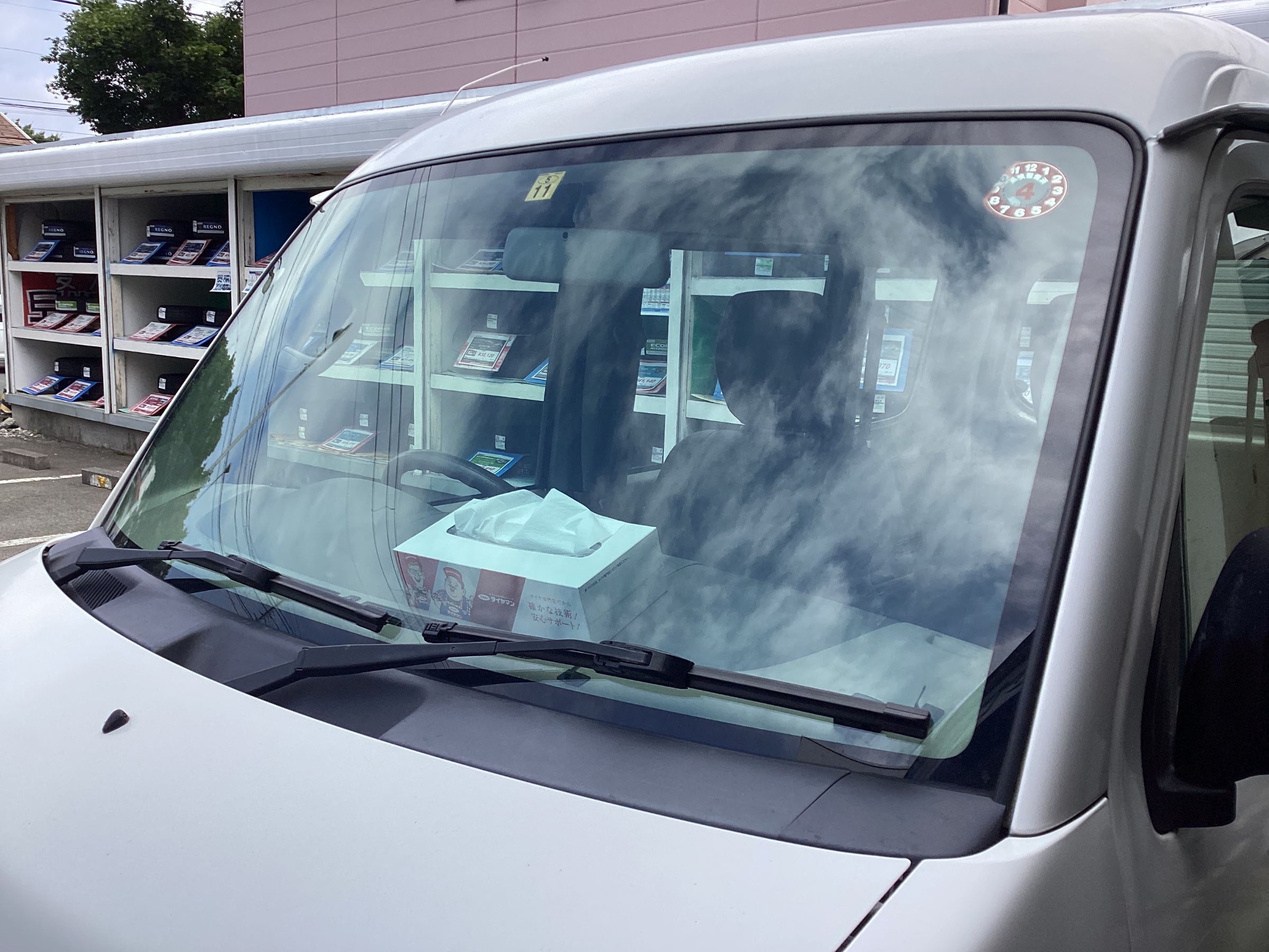 まずはフロントガラスを綺麗に洗浄して